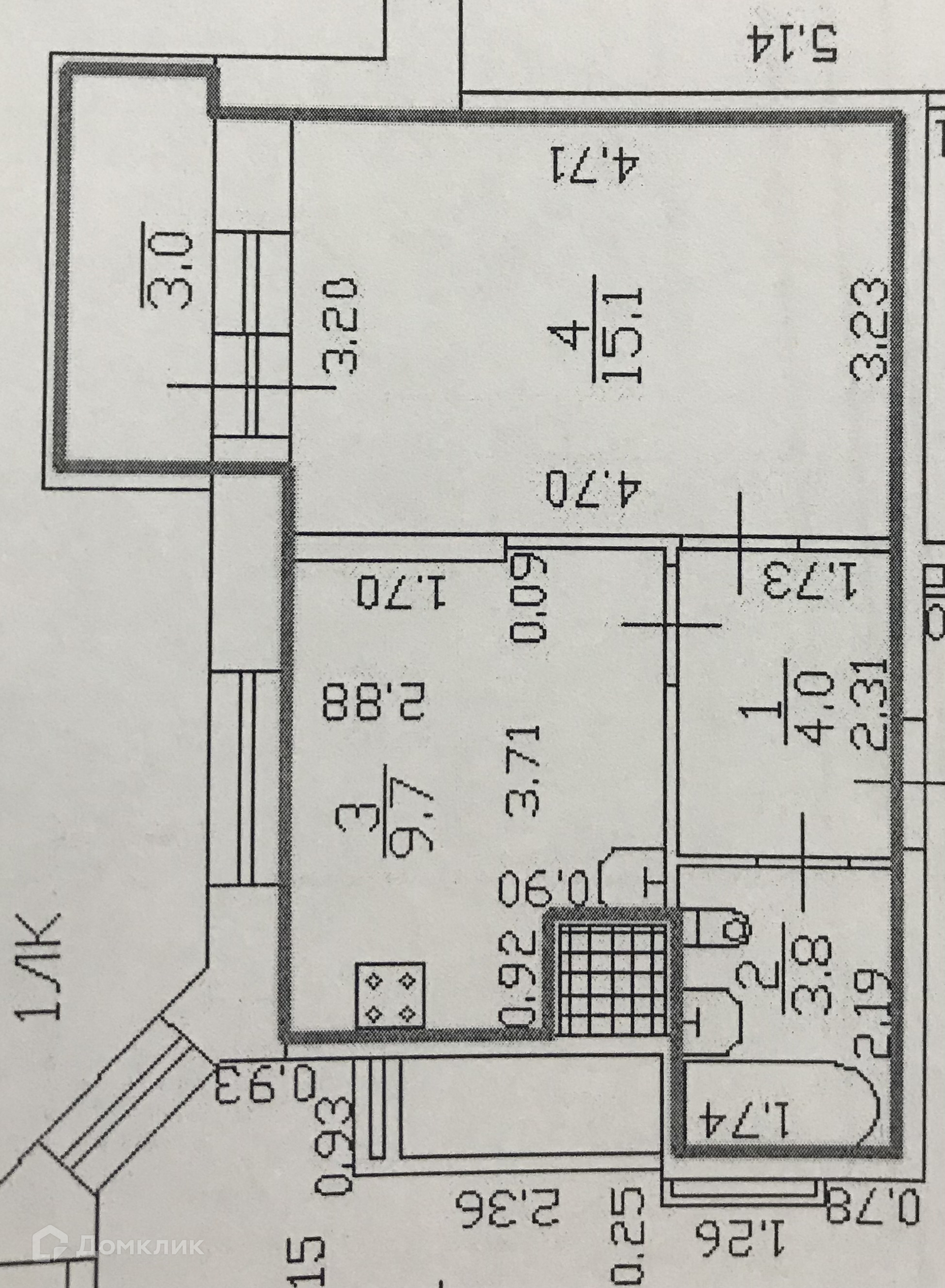 Жилая площадь 15.1 кв.м, кухня 9.7 кв.м, типовой ремонт, на кухне есть мебель, совмещенных санузлов - 1.