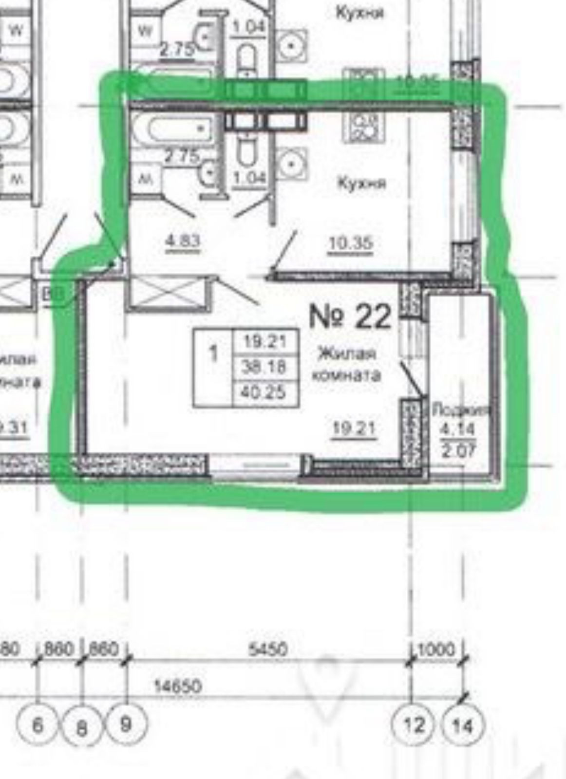 Жилая площадь 19.2 м2