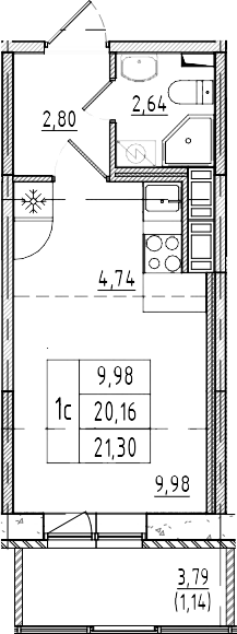 Общая площадь 21.3 м2