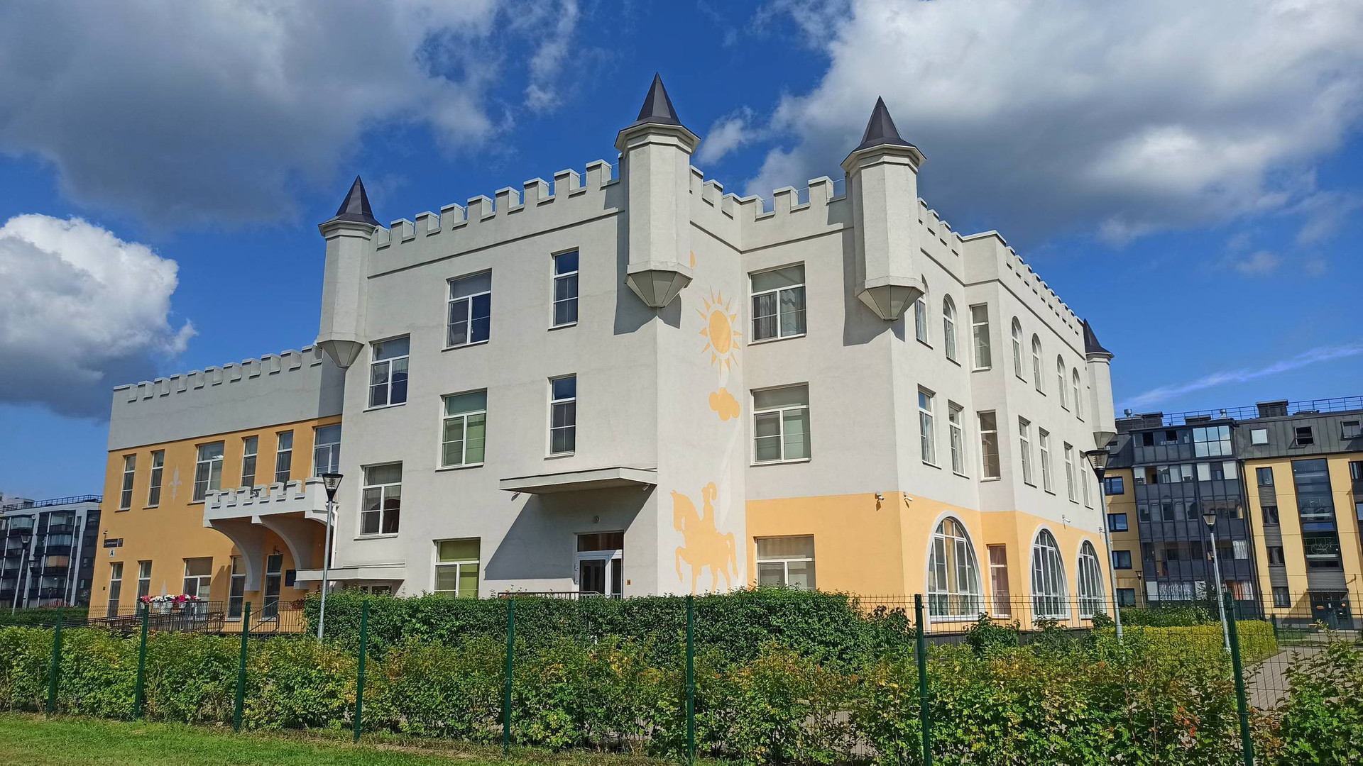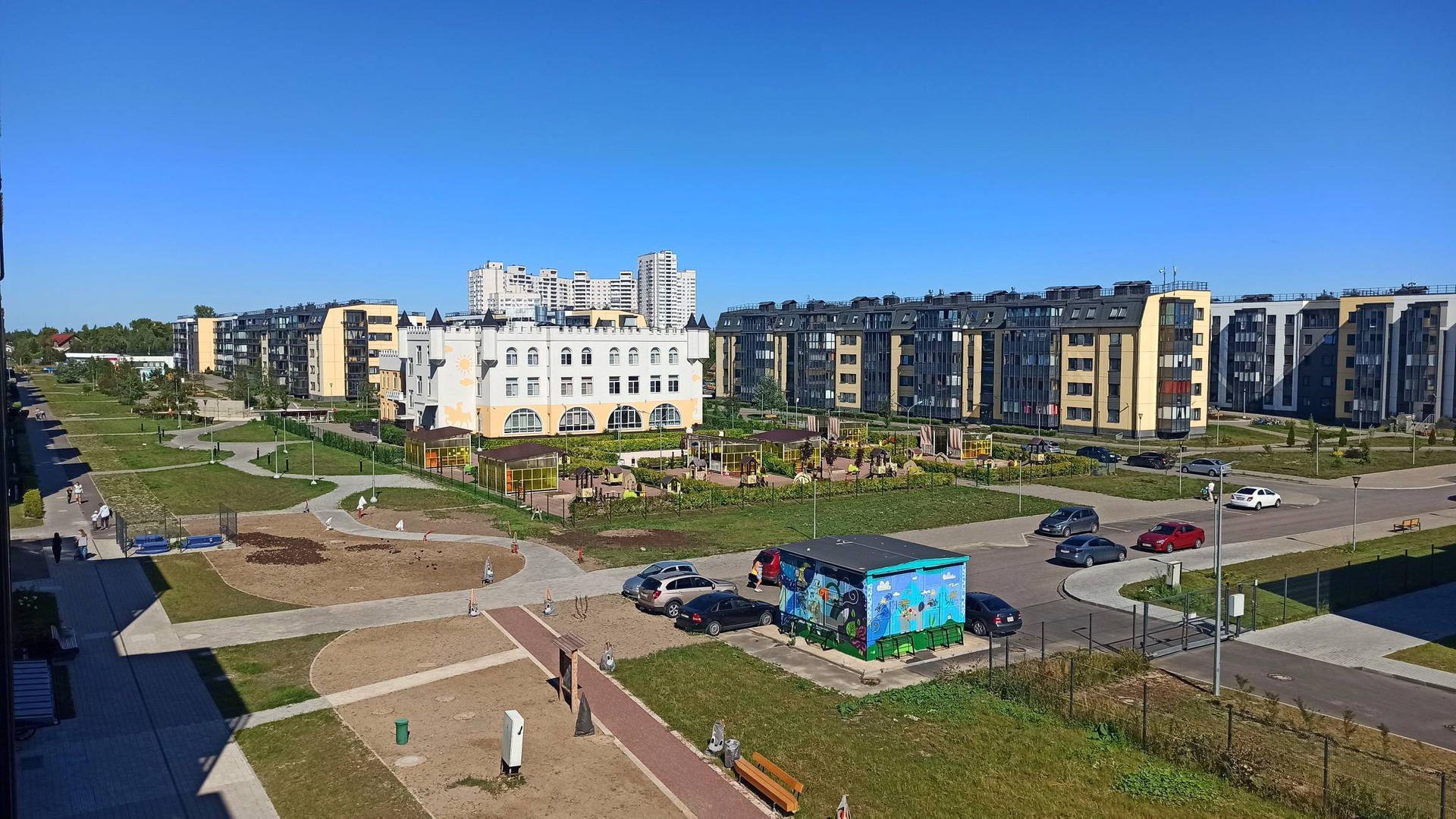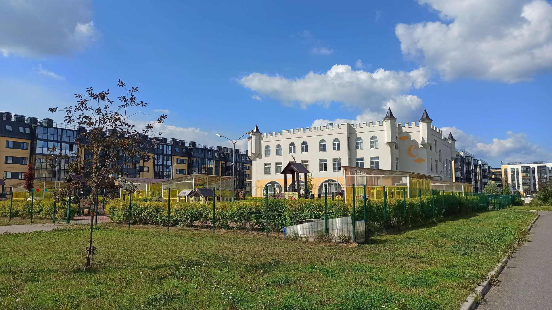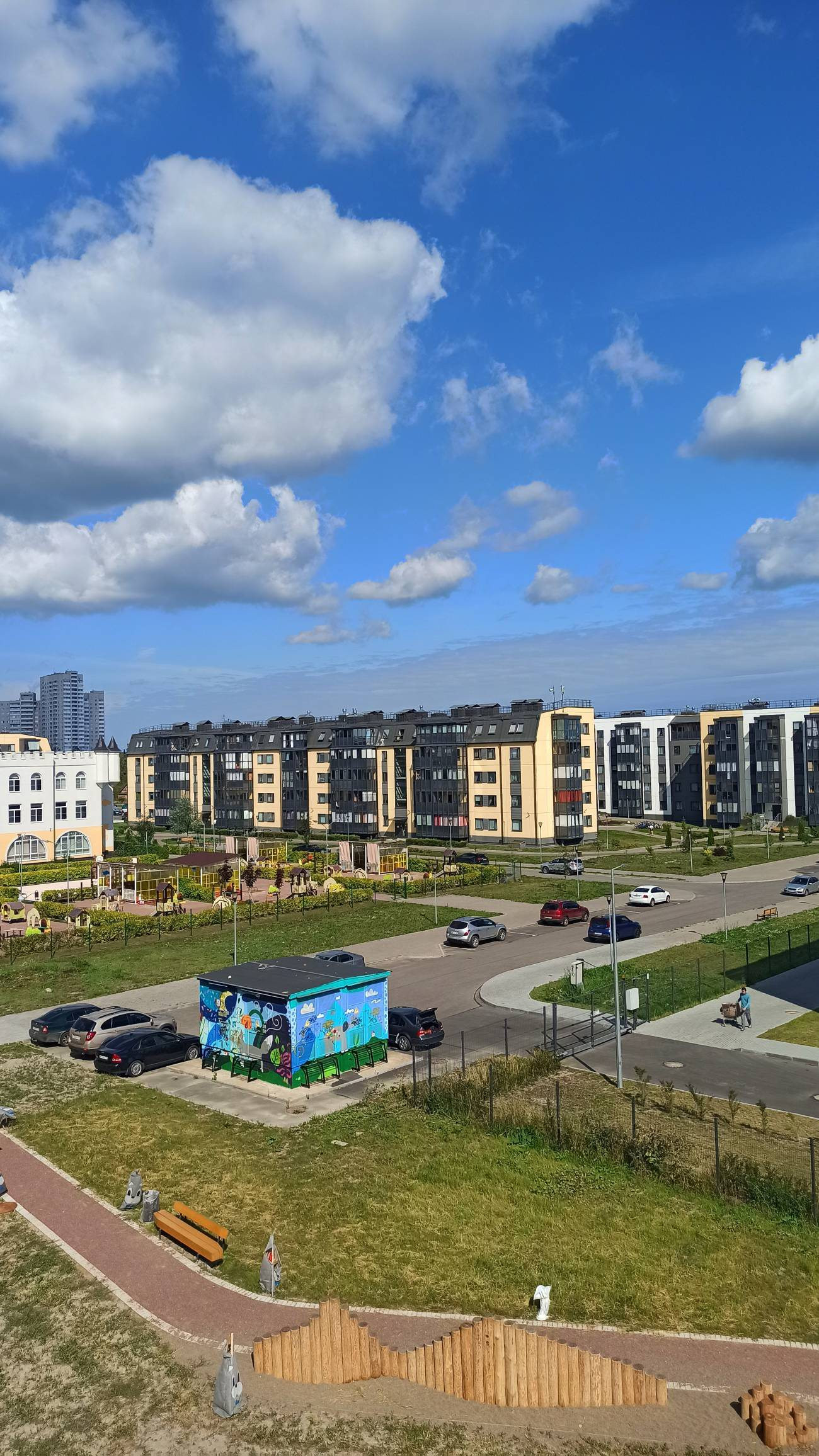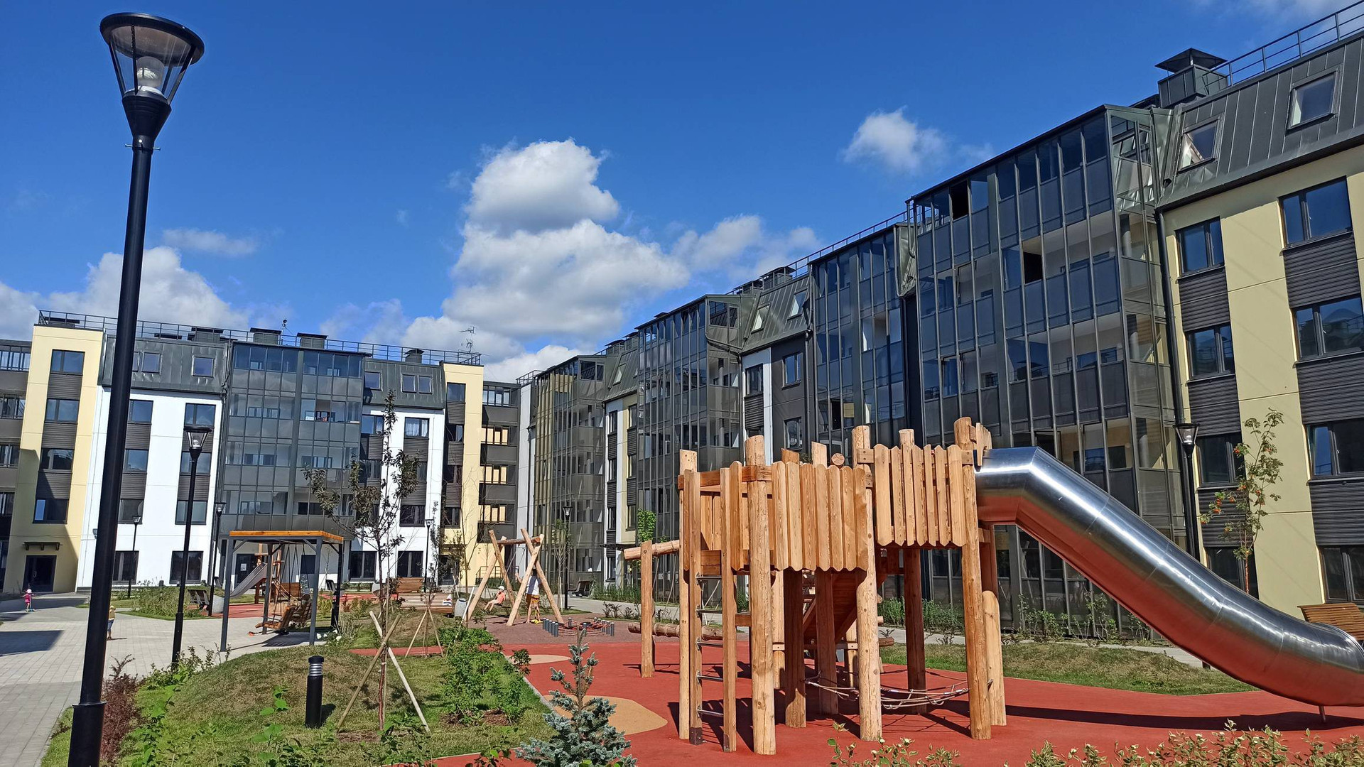 ЖК "Юттери" - это очень уютный финский квартал с большими пешеходными зонами, закрытыми дворами без машин. В квартале очень много зелени и уюта. Прямо напротив дома через пешеходный бульвар находится детский сад и школа - детей можно спокойно отпускать одних.