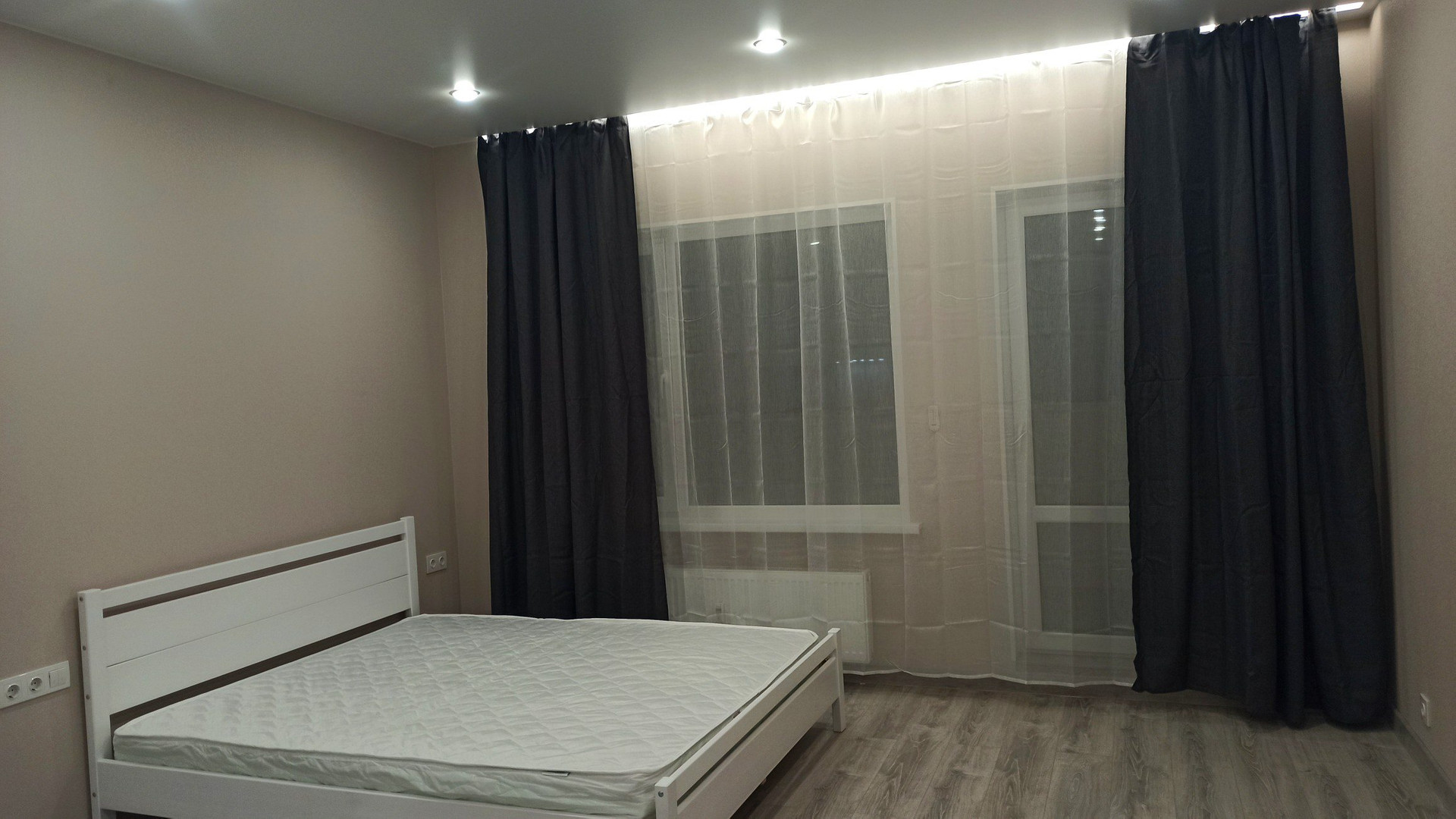 В спальной зоне установлена двухспальнаякровать 160х200 с качественным ортопедическим матрасом.