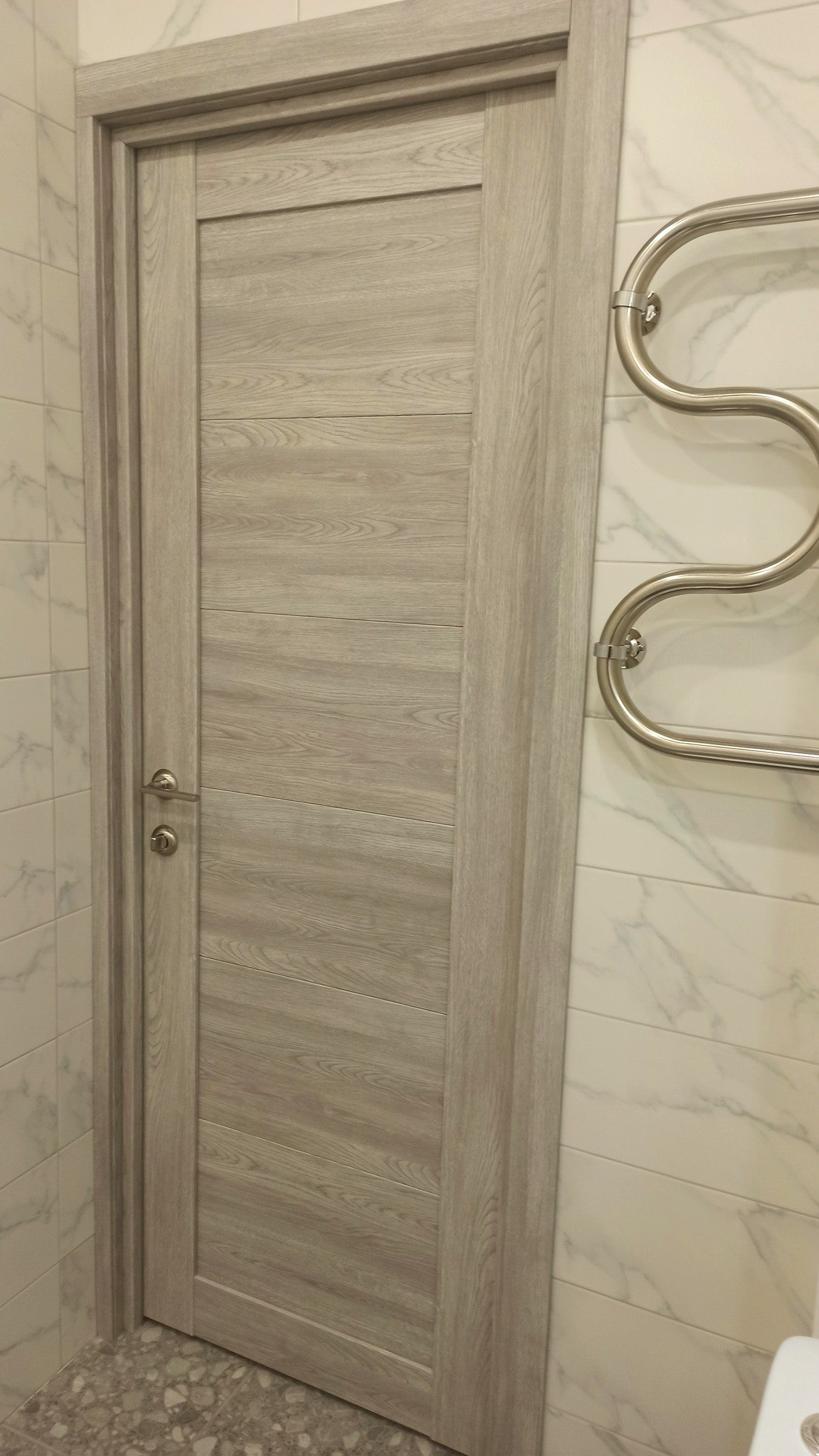В санузле - полы выложены керамогранитом, стены - кафельной плиткой из итальянской коллекции.