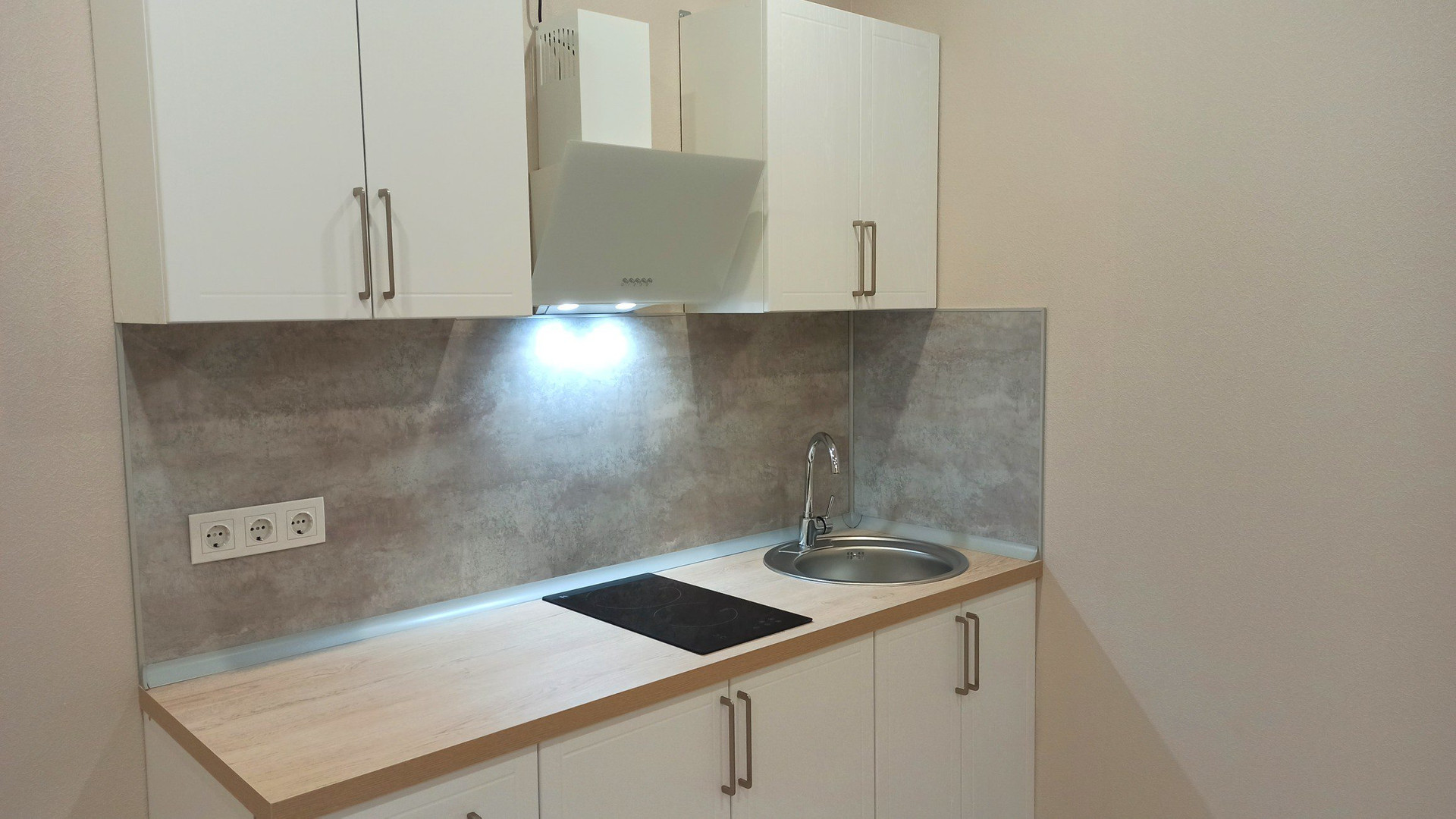 Установлен кухонный гарнитур "Агидель" с варочной панелью, мойкой и вытяжкой.