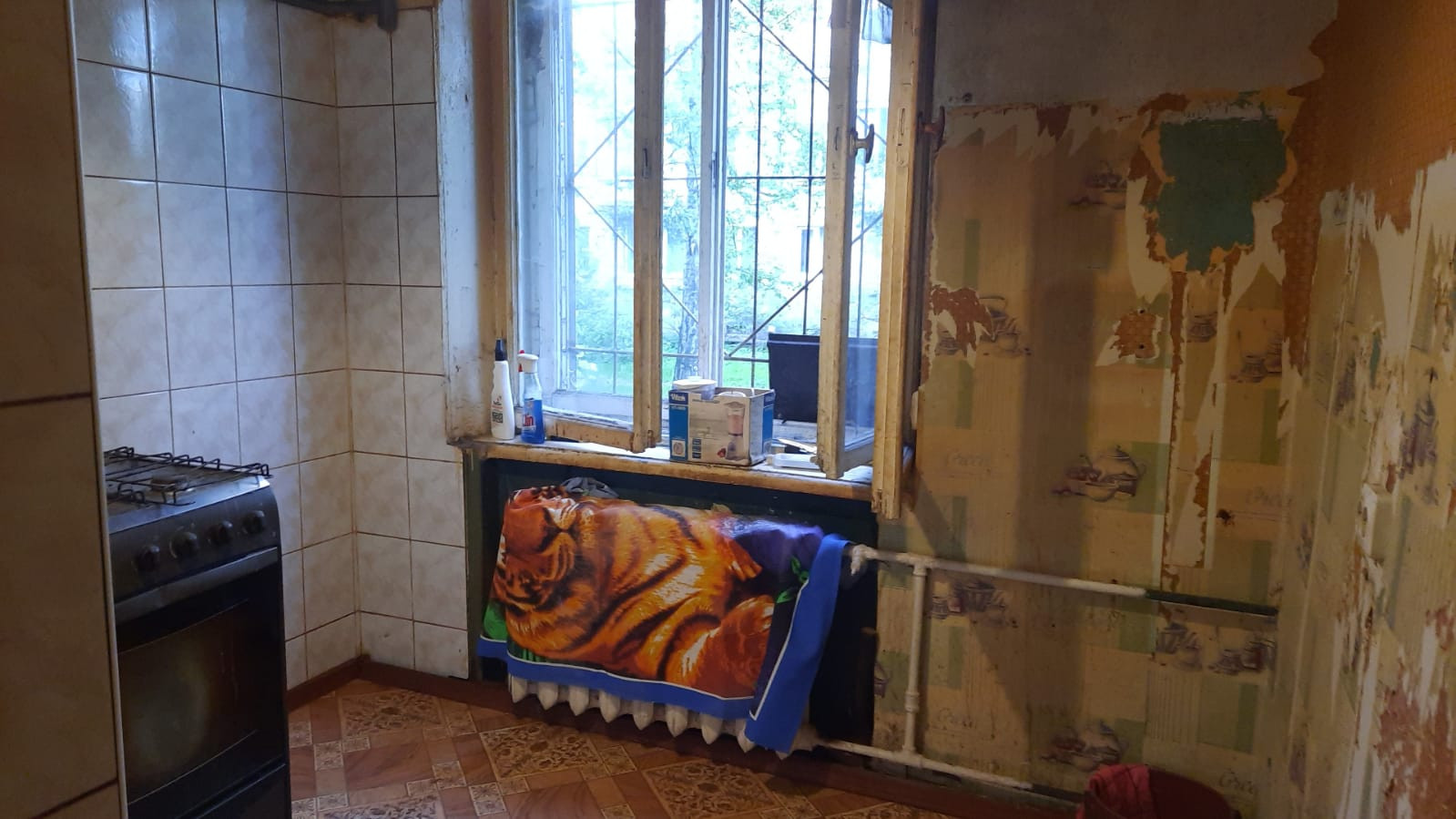 На окнах - стеклопакеты  и металлические решетки; широкие, удобные подоконники.