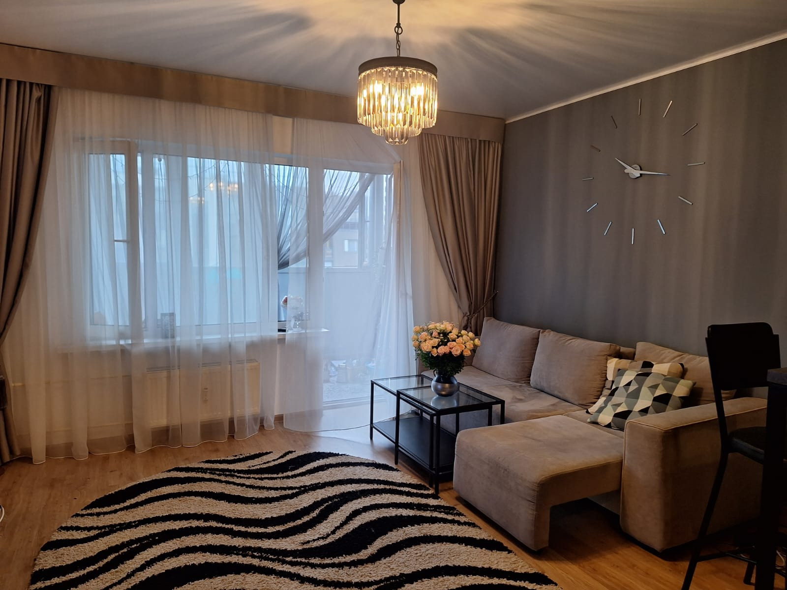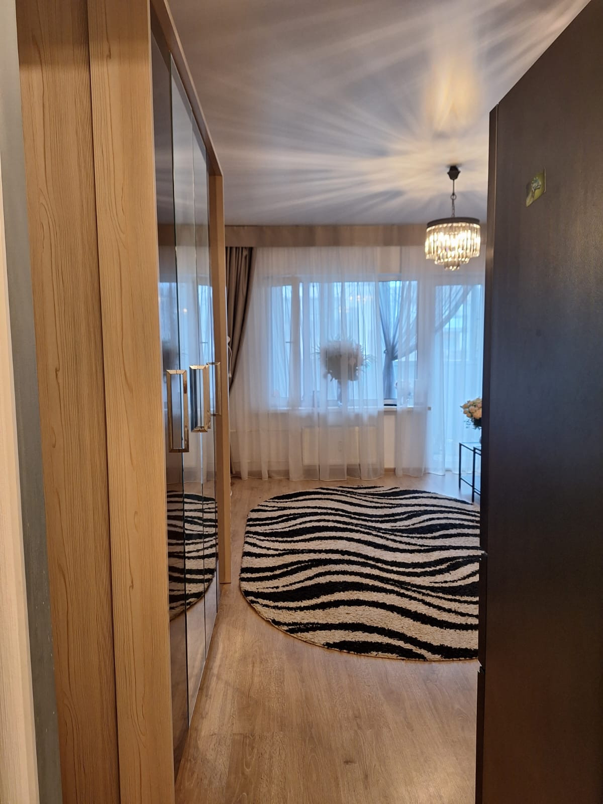 Квартира находится на 4 этаже 5 этажного дома, из окон балкона открывается великолепный вид на благоустроенный двор. Балкон утеплён и используется  как комната. В квартире выполнен качественный ремонт с использованием современных материалов. Интерьер выполнен в мягких  тонах, что создает ощущение комфорта. Санузел совмещенный, отделан керамической плиткой.