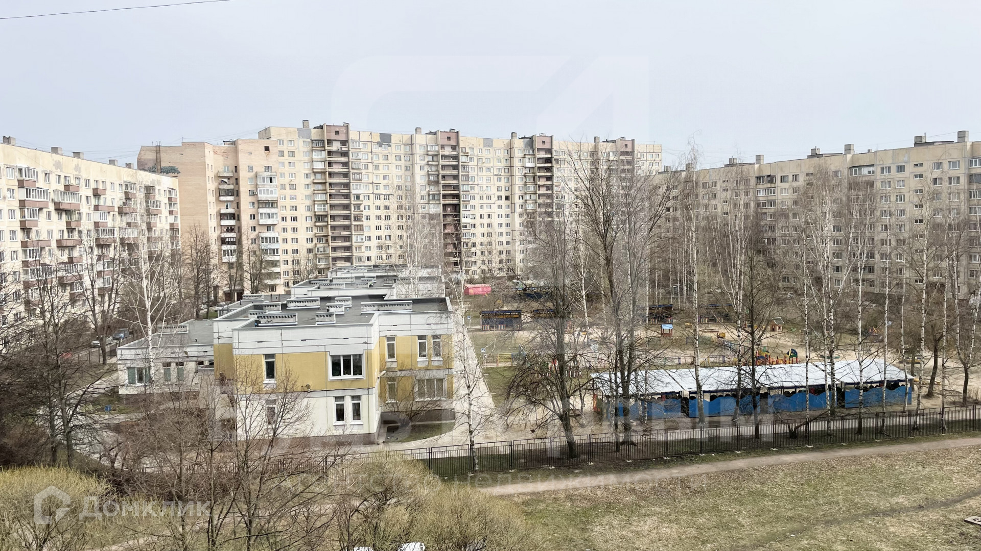 - В просторном дворе расположен детский сад, рядом множество школ и гимназия.