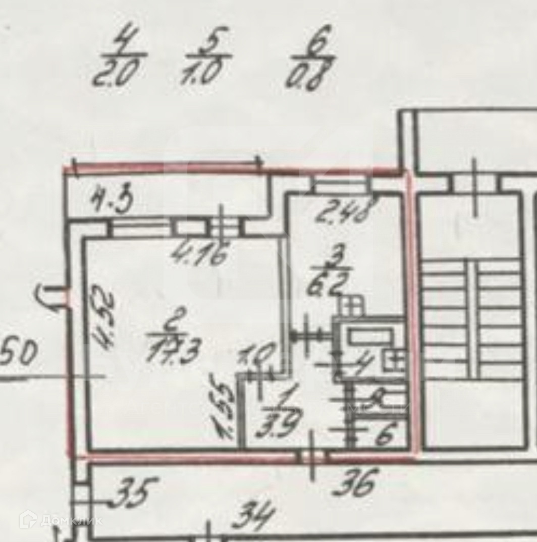 Жилая площадь 17.3 м2