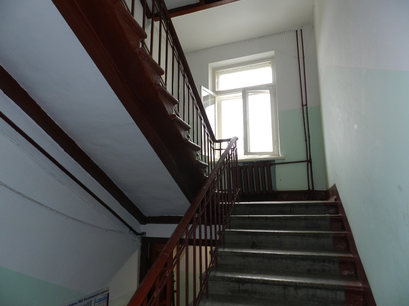 Окна выходят на 2 стороны - во двор и на Привокзальную площадь.