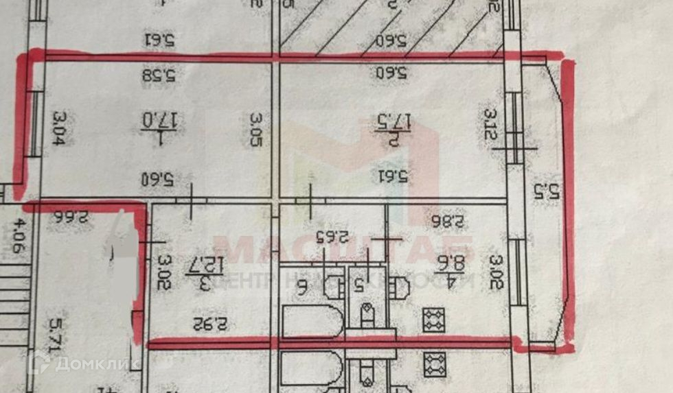 Общая площадь 60.5 м2