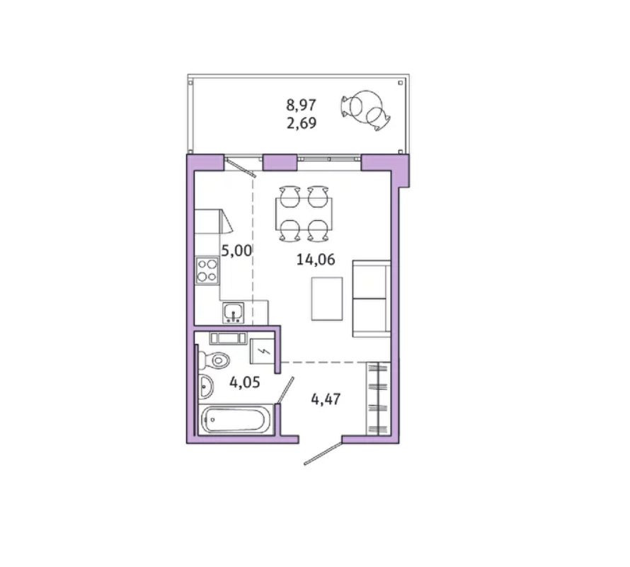 Общая площадь 27.6 м2