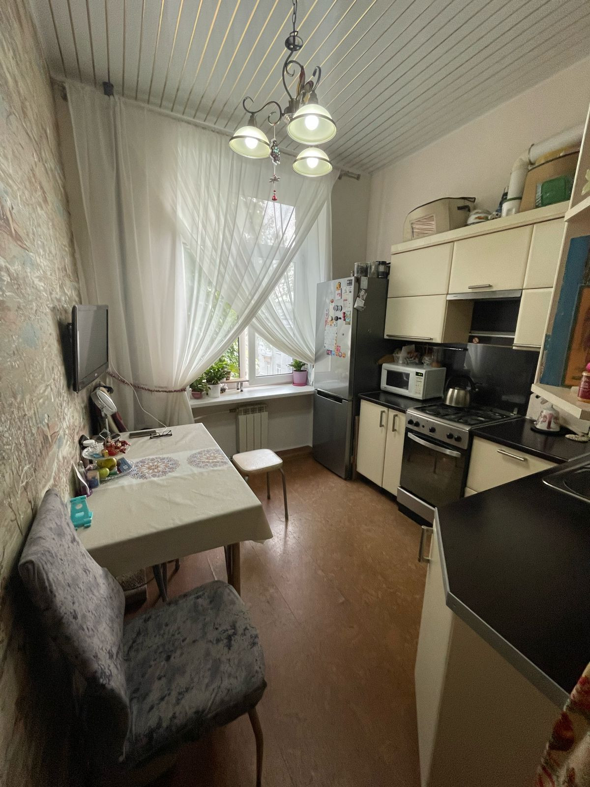 Потолки в квартире высотой 3 метра, это добавляет ощущение пространства и воздуха.