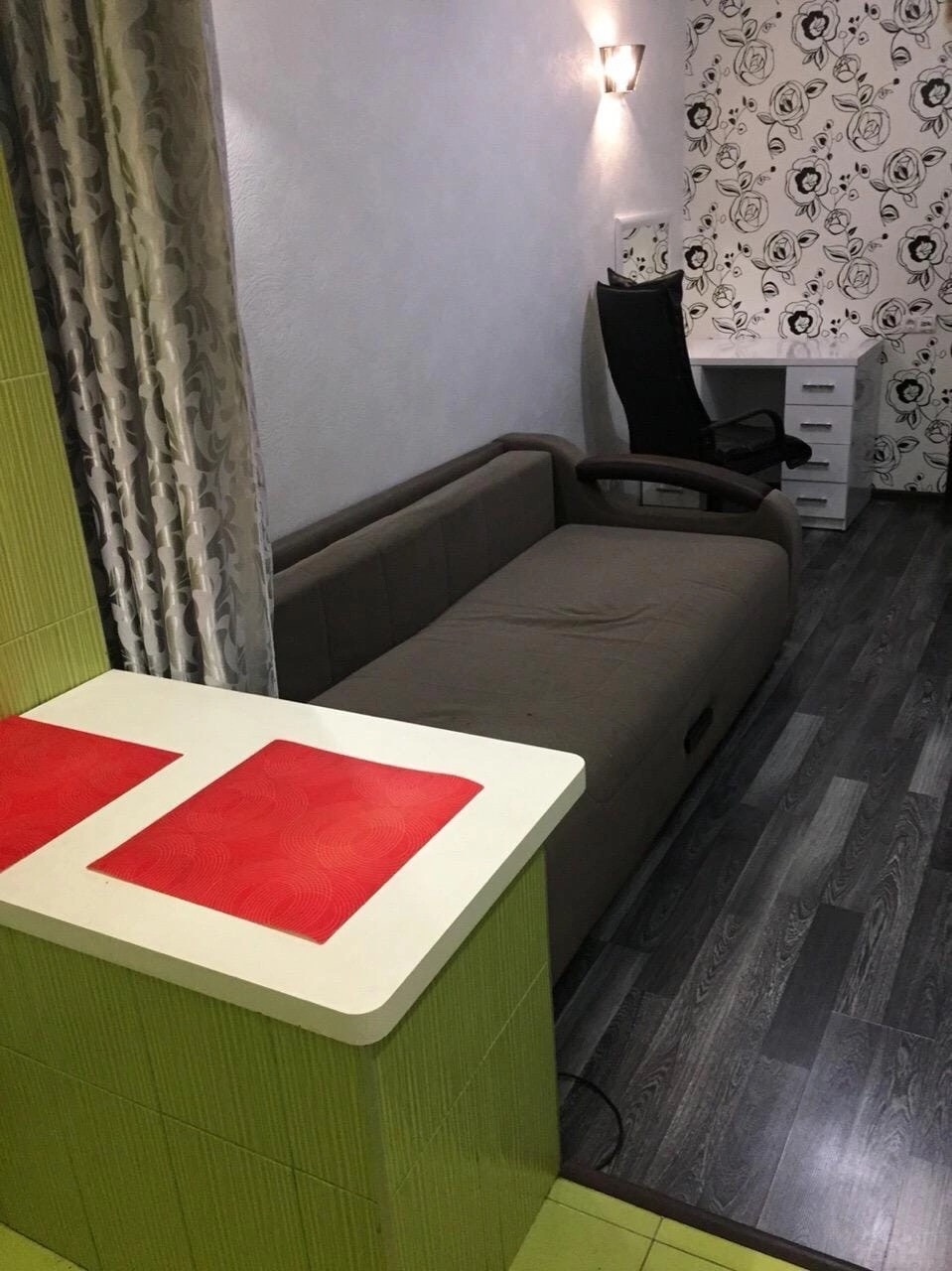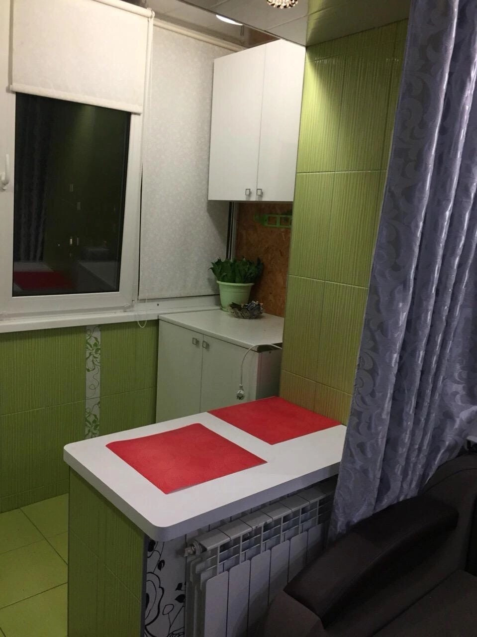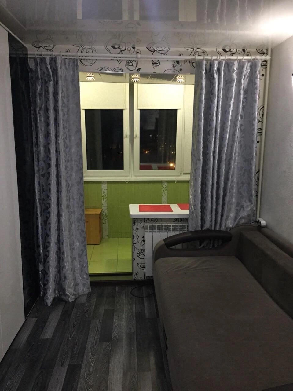 Комната совмещена с балконом,сделаны тёплые полы и мини кухня!