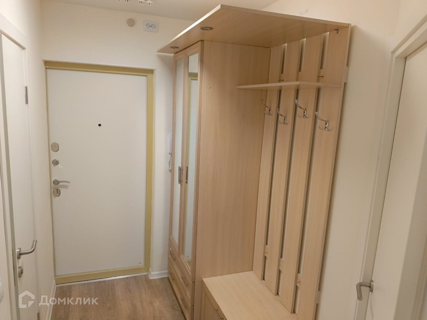 В прихожей большой шкаф с зеркалом. Санузел совмещенный, ванная комната оборудованная стиральной машинкой.