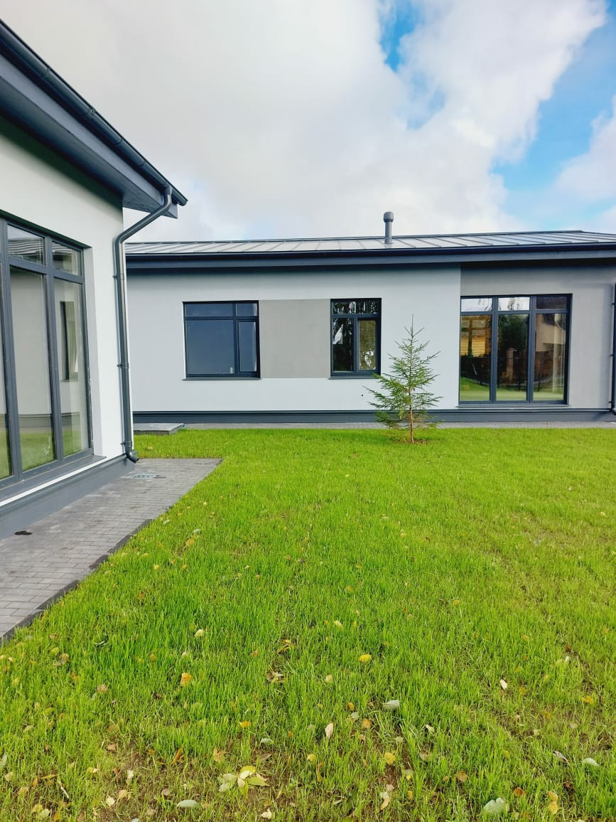 Дома полностью готовы под чистовую отделку. Фундамент- плита 30 см, стены газоблок 250 мм+вата 100мм, внутренние перегородки 150 мм, несущие стены 250 мм, крыша-двойной стоячий кликфальц, с системой водоотведения. Фасад декоративная силикатно-силиконовая штукатурка Ceresit. Так же произведена система подсветки дома и участка с датчиками движения.