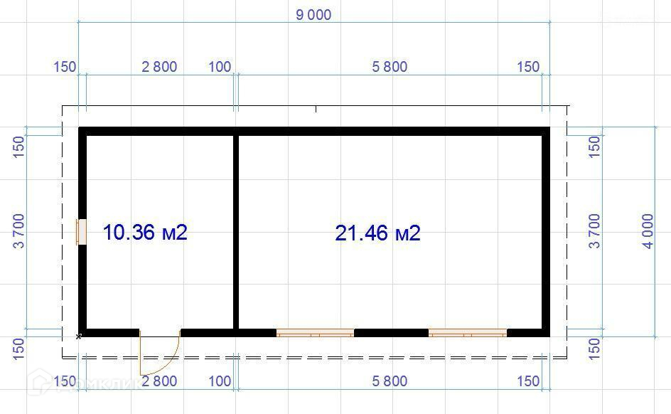 Общая площадь 54 м2