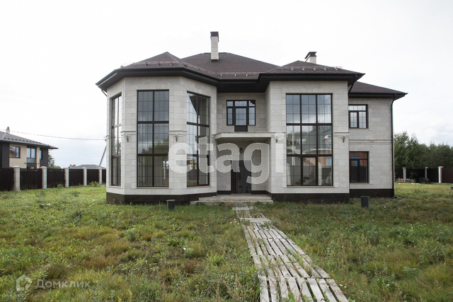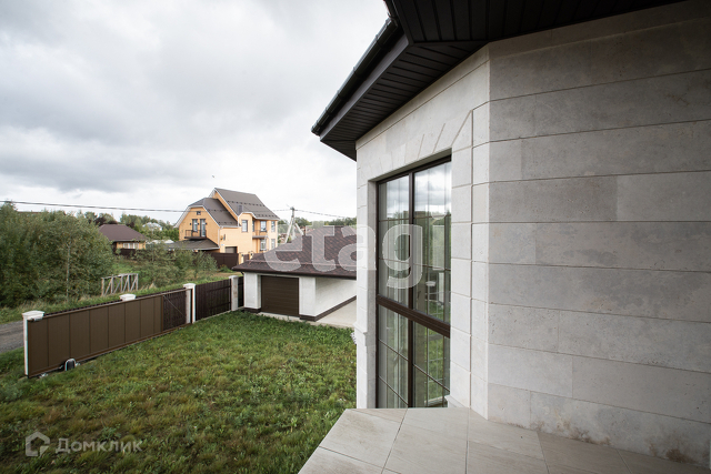 2-этажный новый коттедж из высококачественных материалов 2018 года постройки. Возведён из газобетона, имеет монолитные перекрытия и монолитный фундамент. Облицован травертином (природный натуральный камень, близкий к мрамору), мягкая кровля, снегодержатели, автоматические ворота, система видеонаблюдения, дренажная система, круглосуточная охрана.