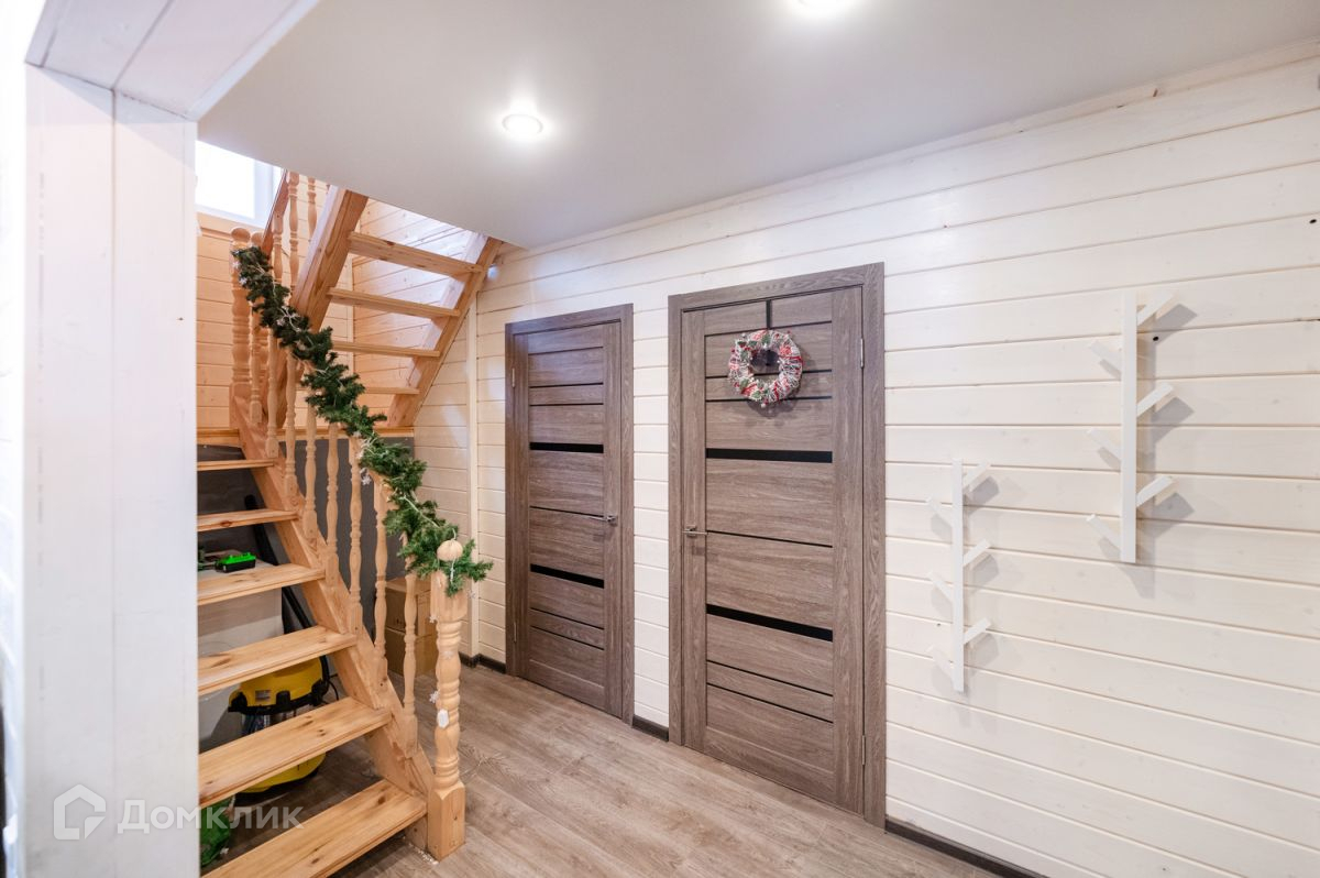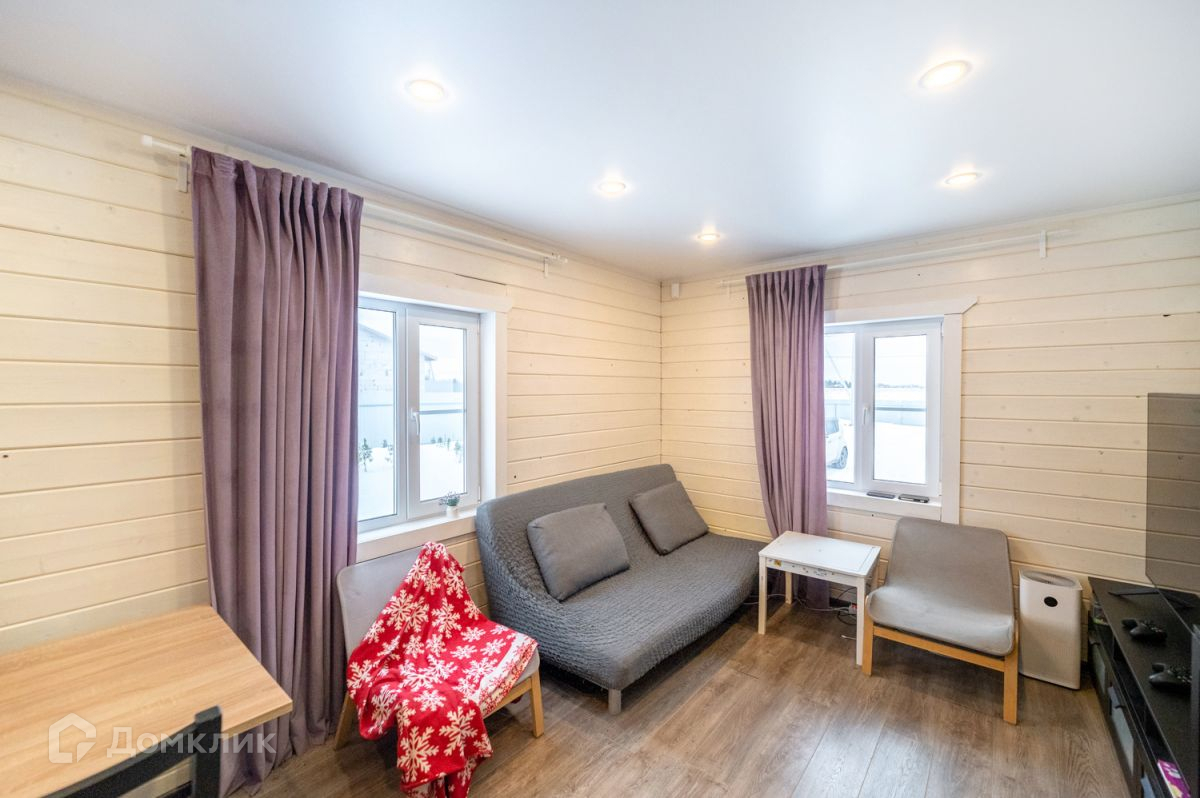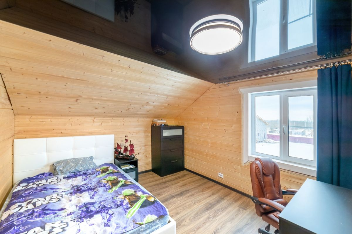 Дом построен по каркасной технологии, укомплектован мебелью и техникой. Практичная планировка включает себя: прихожую. Светлую и просторную гостиную с кухней, санузел с душевой, сауна. 1 спальня расположена на первом этаже. На втором этаже три спальни и комната отдыха