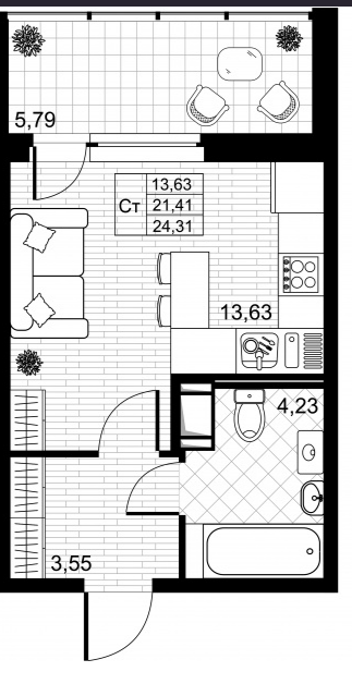 Общая площадь 24.31 м2