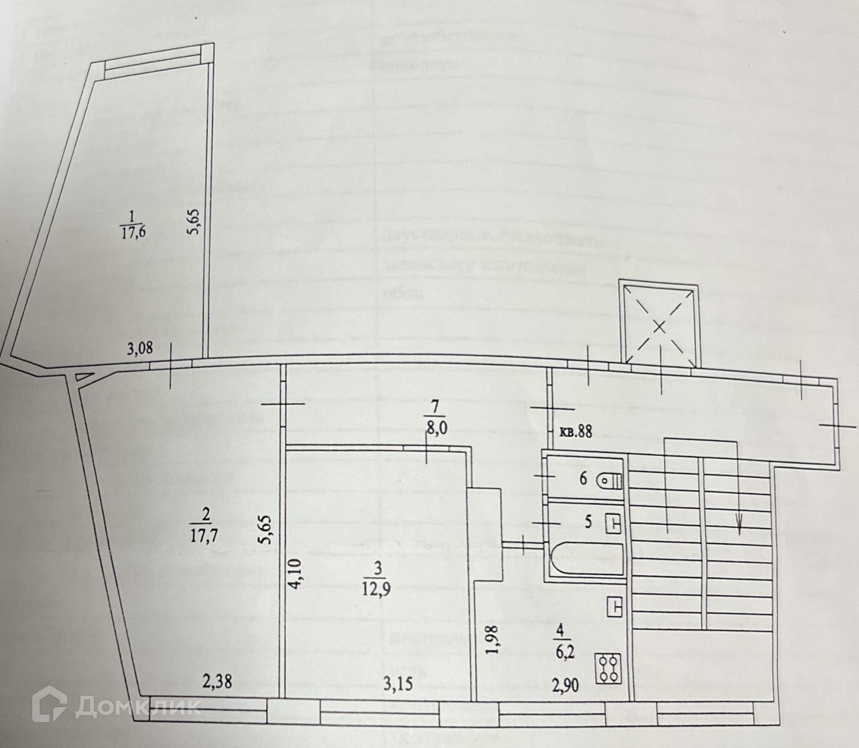 Квартира расположена на 4 этаже общей площадью 65,4 кв. м. Комнаты смежно изолированные: 17,6+17,7 кв.м.+12,9 кв.м. Кухня - 6,2 кв м.