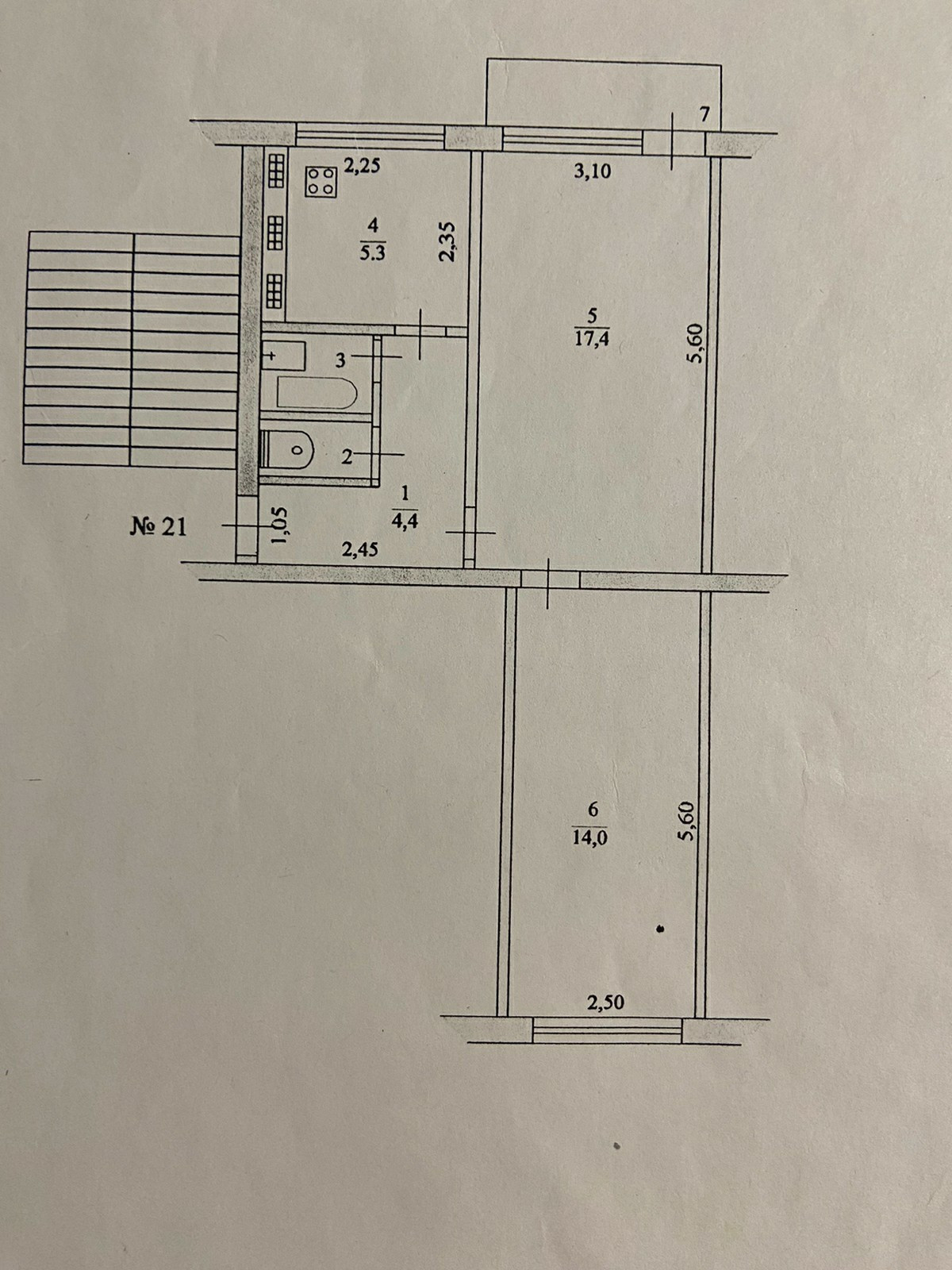 17.4 и 14 метров, раздельный санузел.