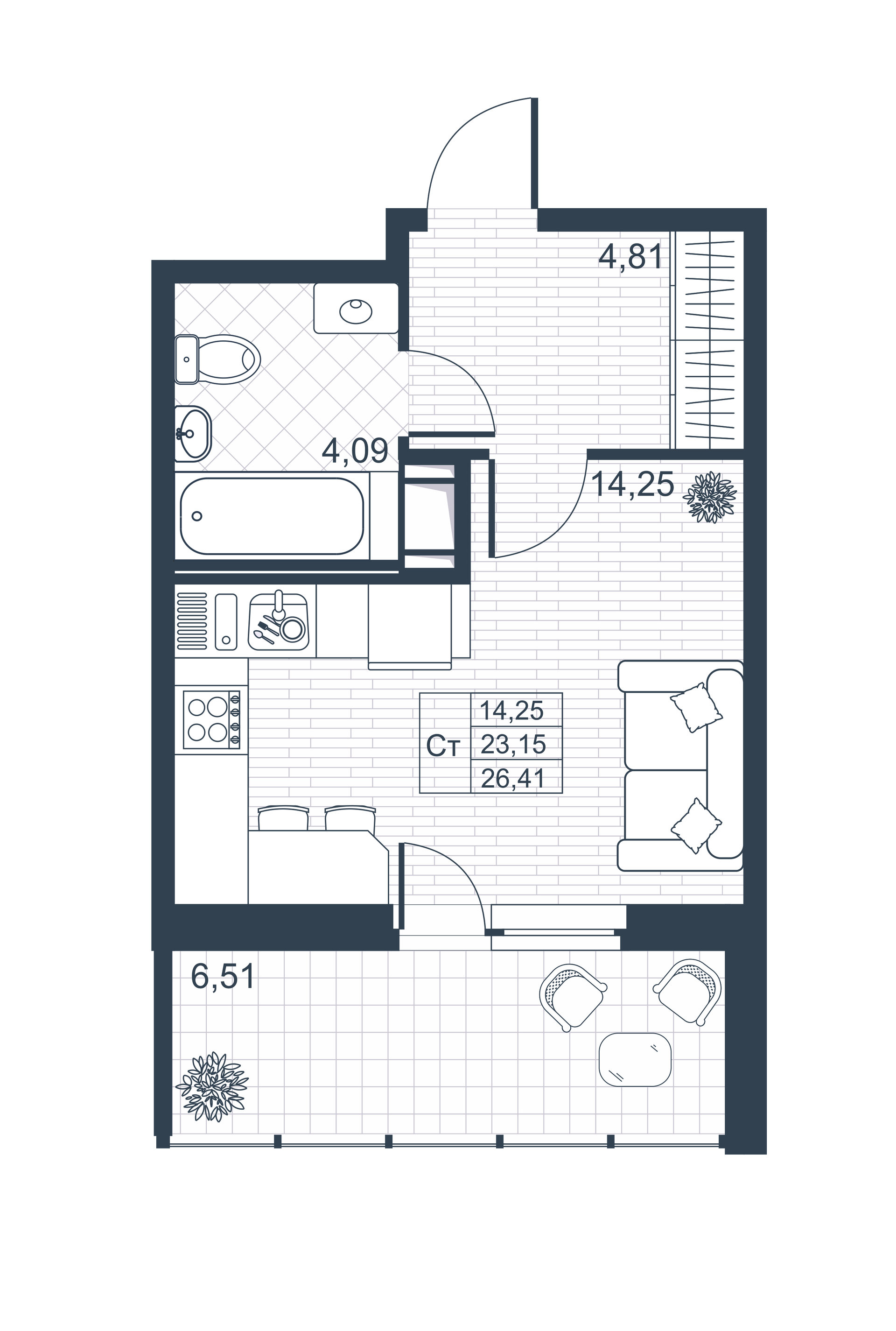 Общая площадь 23.15 м2