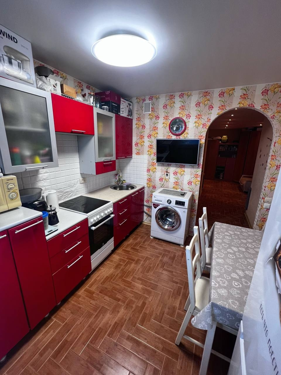 Кухонный гарнитур остаётся в подарок.