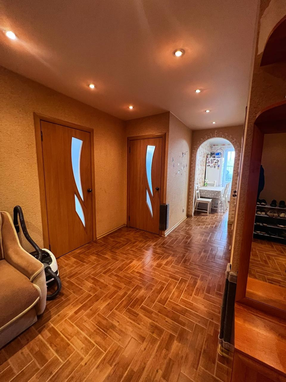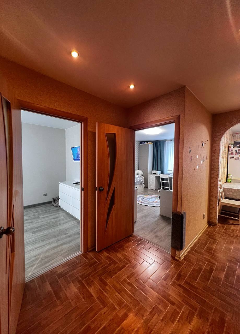 В продаже просторная двухкомнатная квартира с большим холлом (17,1 кв.м), в кирпичном доме с закрытой территорией, собственной площадкой и мангальной в самом центре города Коммунар.