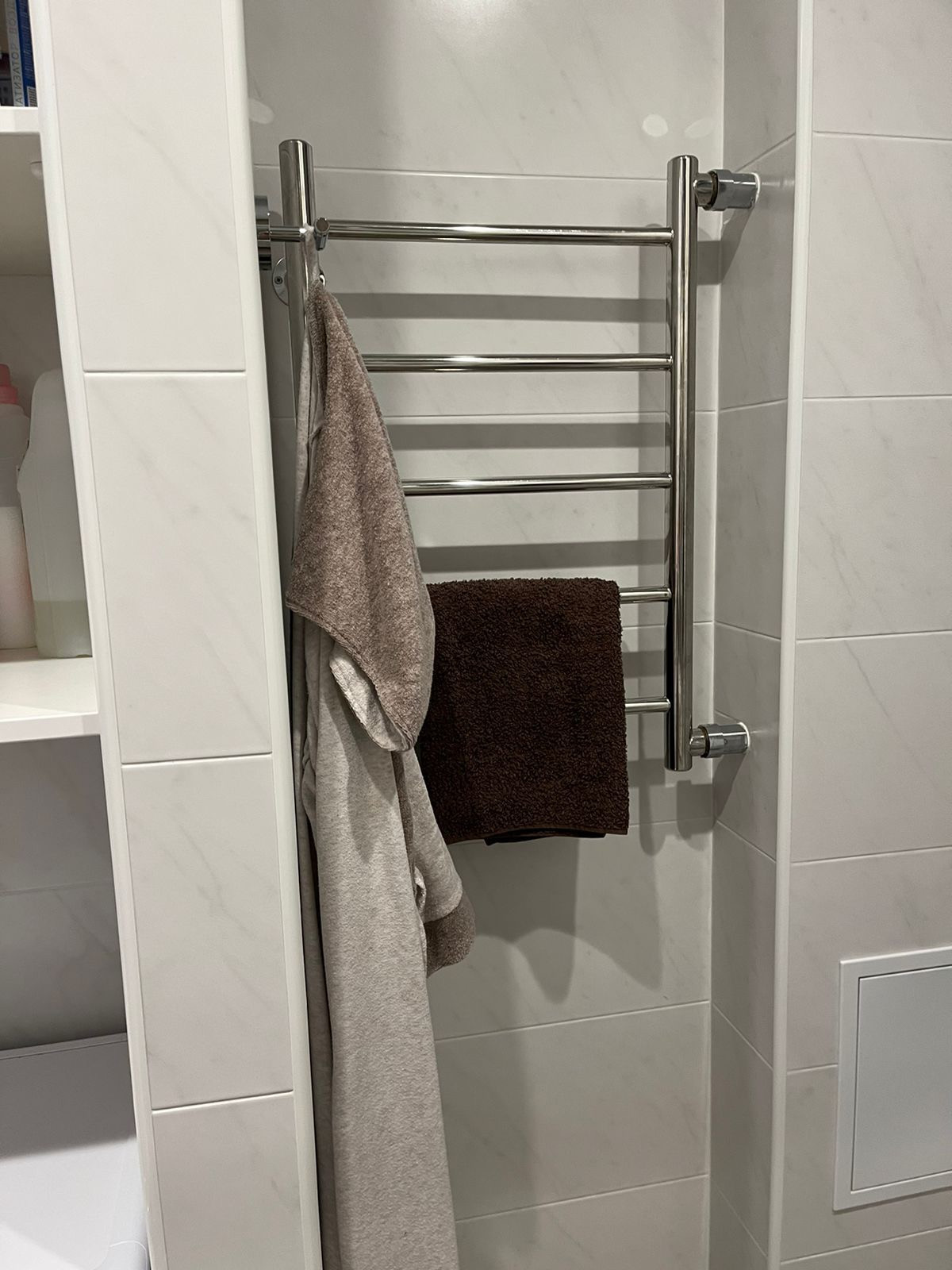 В ванной комнате установлен регулируемый теплый пол.