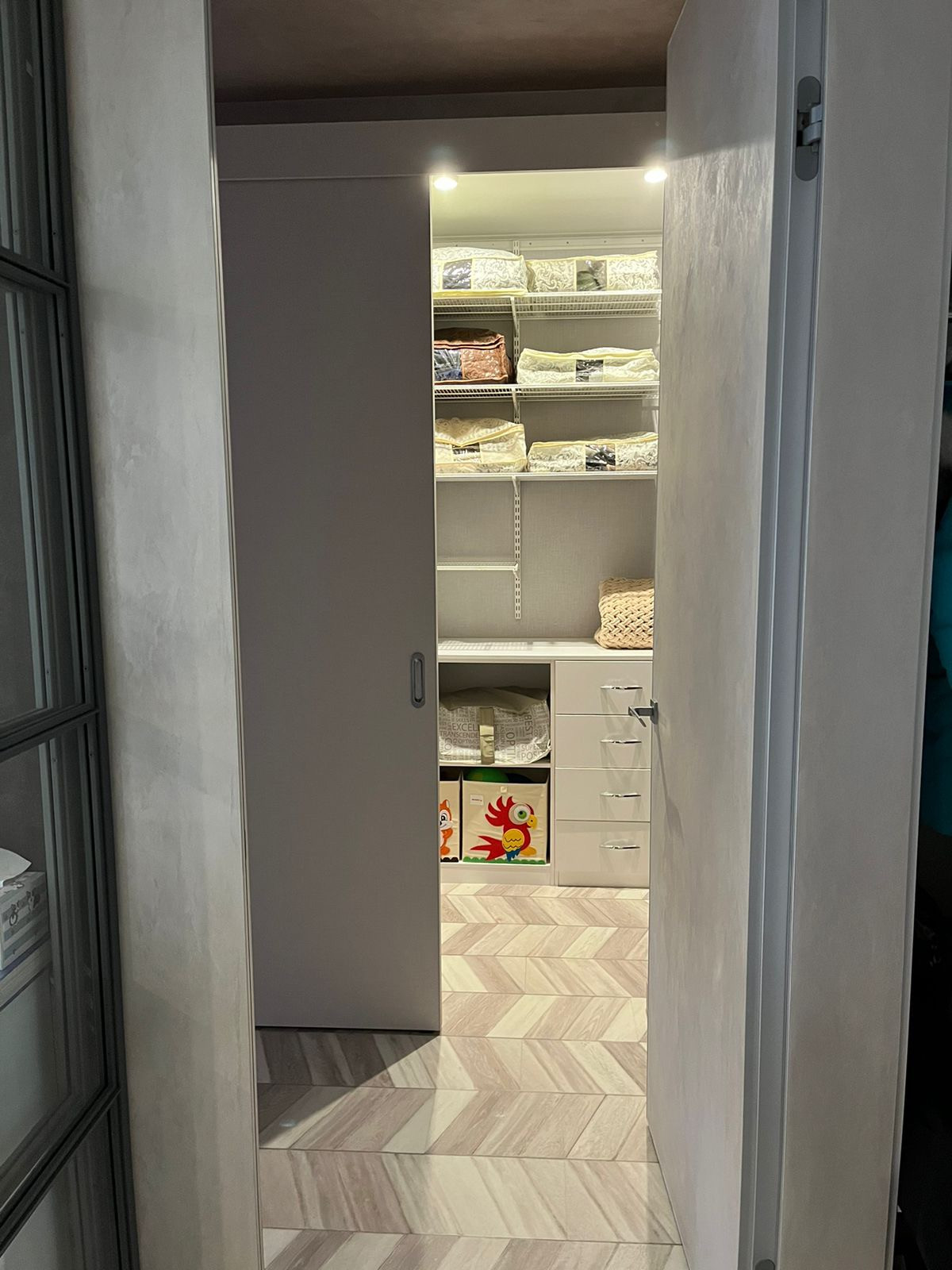 Квартира оборудована гардеробом, система фирмы Elfa.