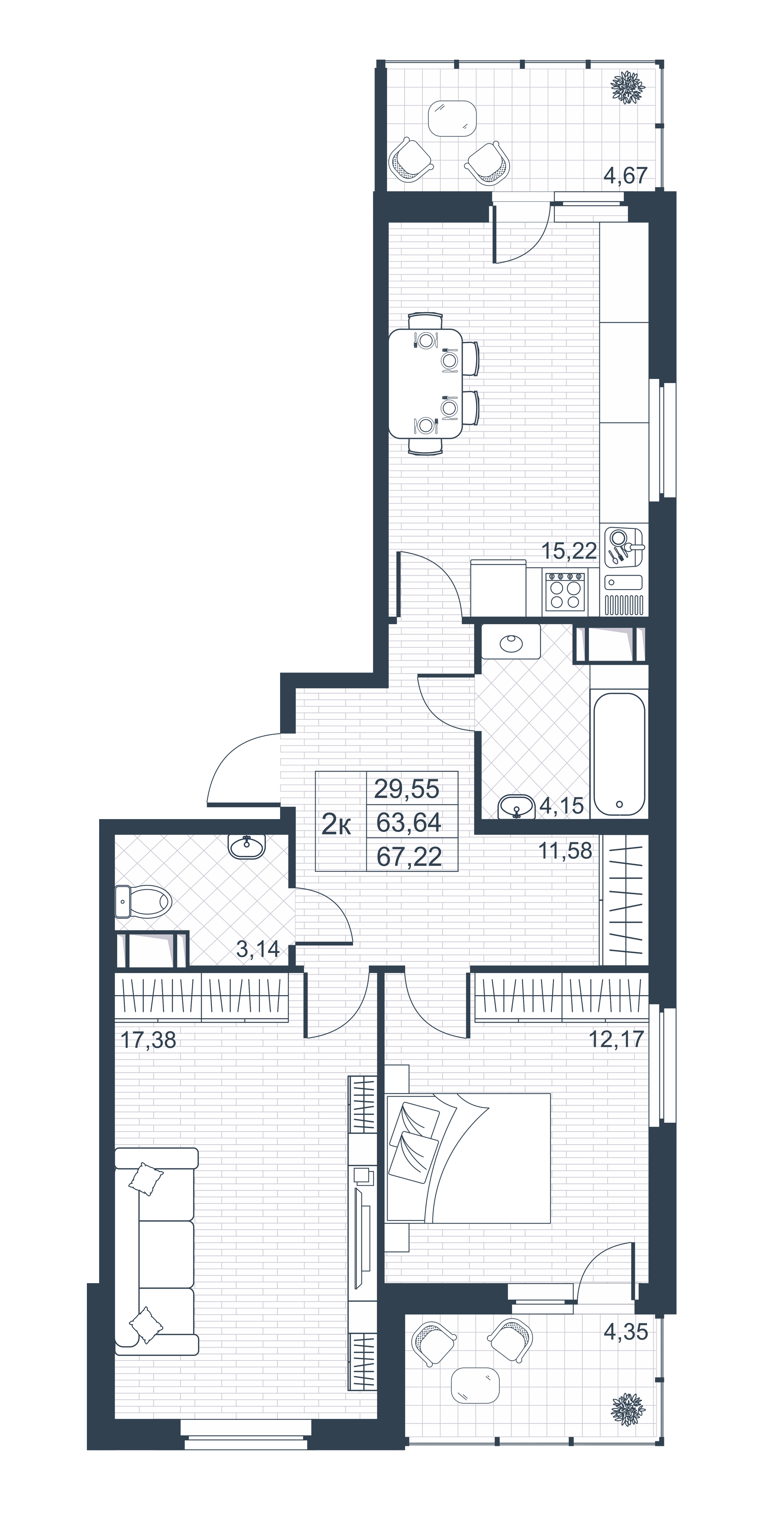 Общая площадь 67 м2