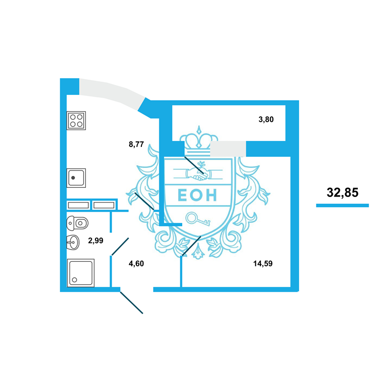 Общая площадь 32.85 м2