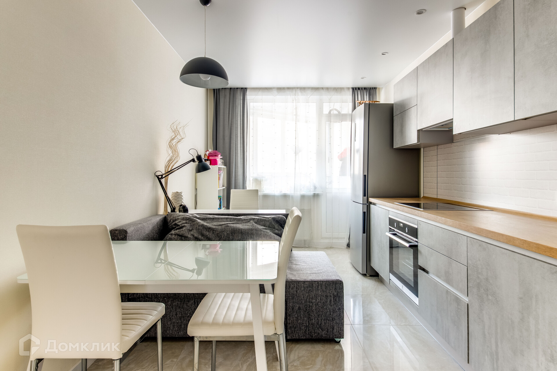 -Установлена кухня. 6 метров рабочей поверхности. Варочная панель, духовой шкаф, посудомоечная машина, система фильтрации, вытяжка, холодильник.