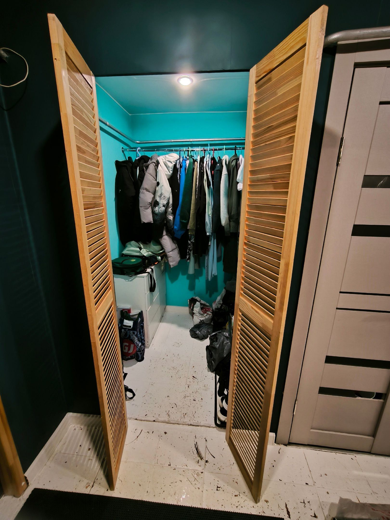 Есть кладовка и балкон, пол кафельный(кроме балкона).