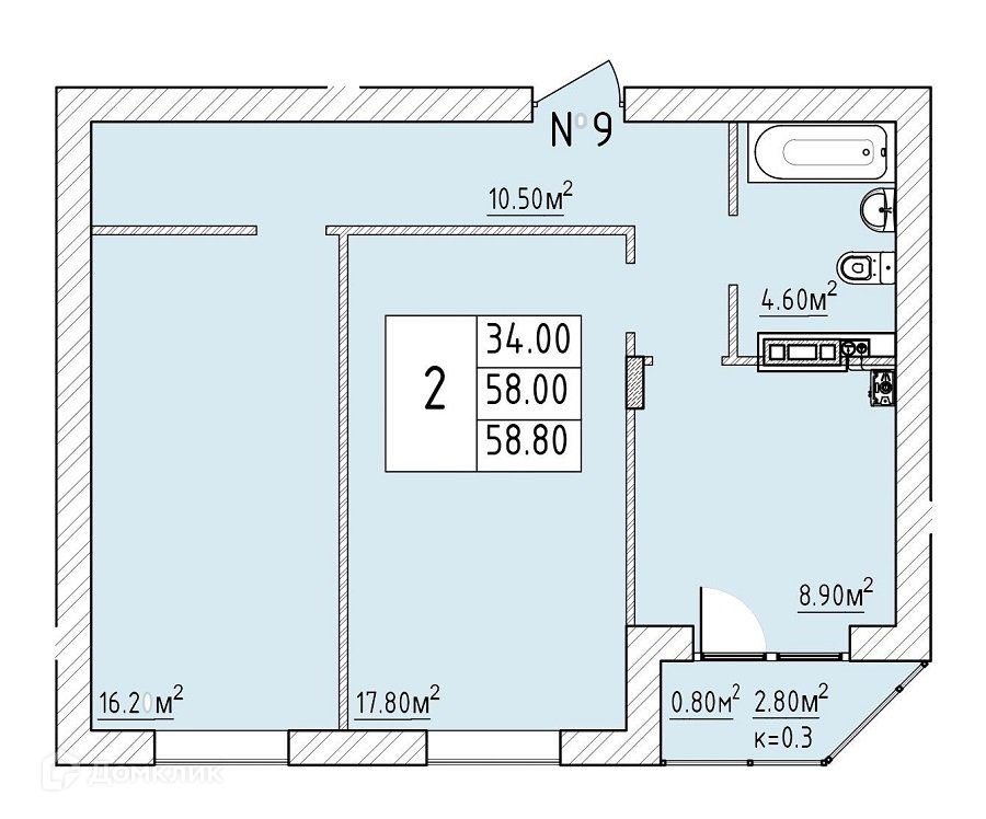 Общая площадь 58 м2