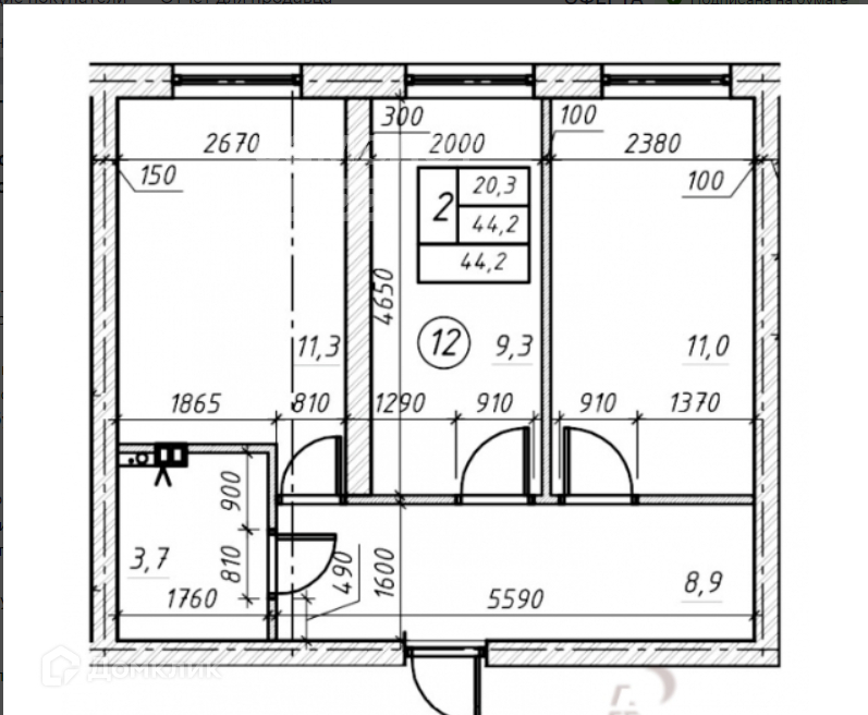 - Квартира с рациональной планировкой площадью 44.6 кв. м