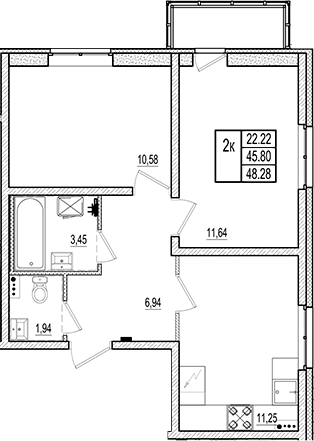 Жилая площадь 22 м2