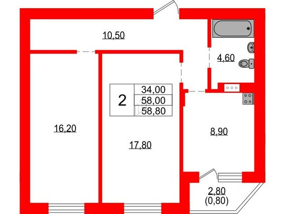 Общая площадь 58.8 м2