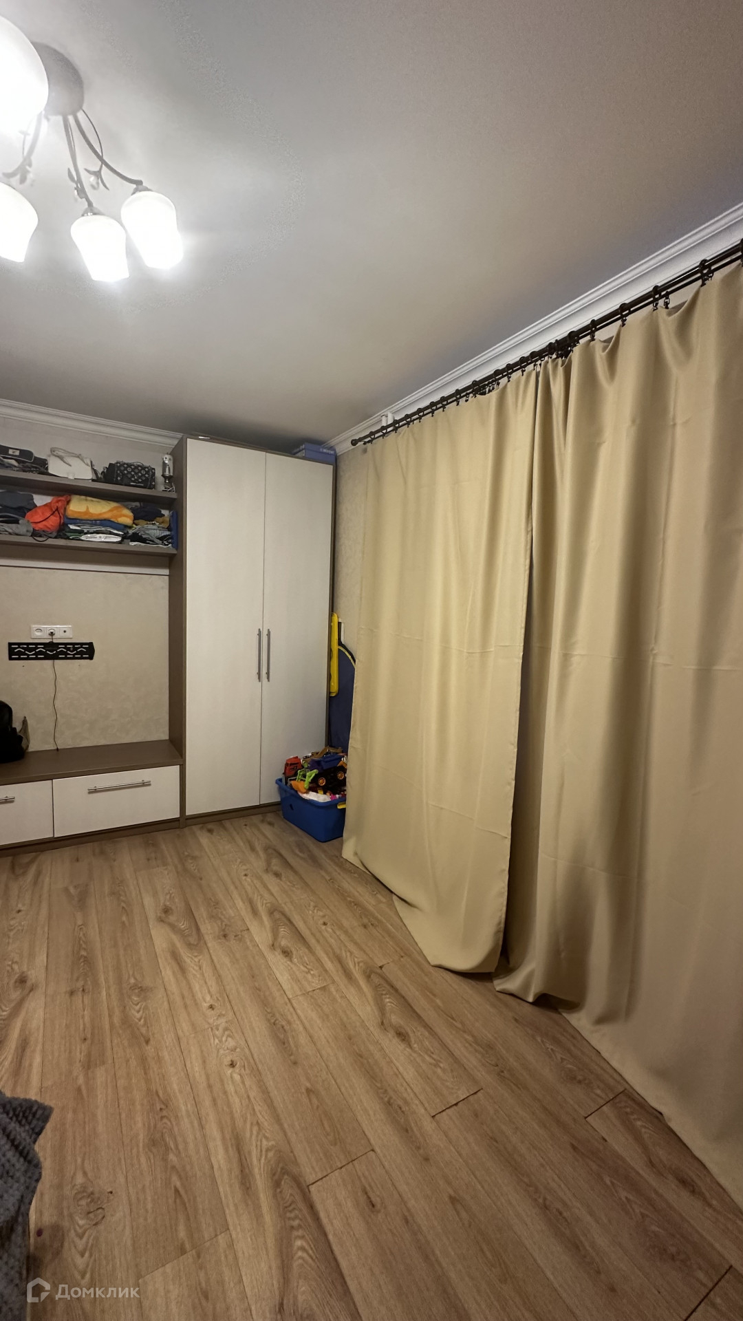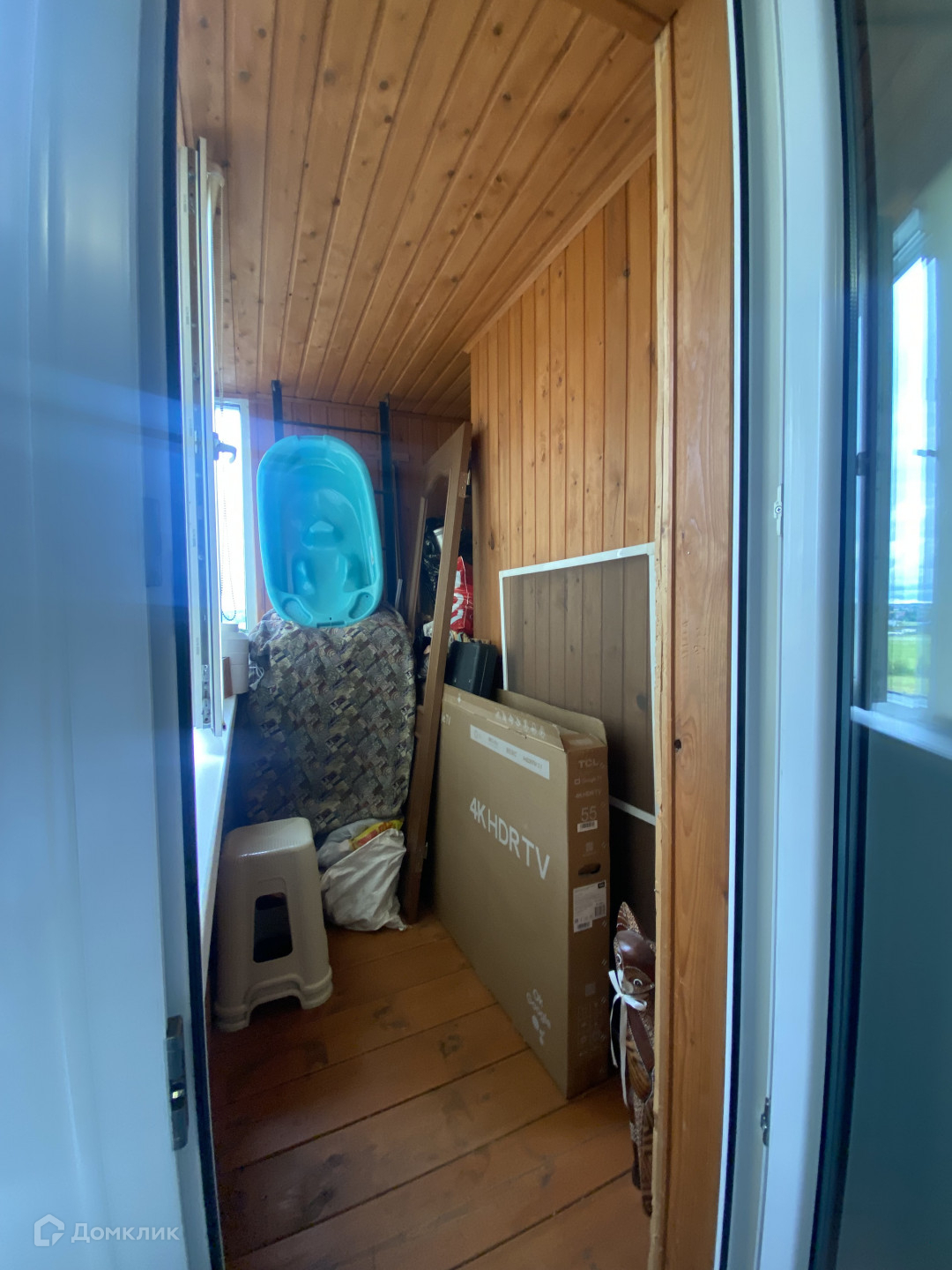Балкон застеклен, есть встроенный шкаф для хранения.