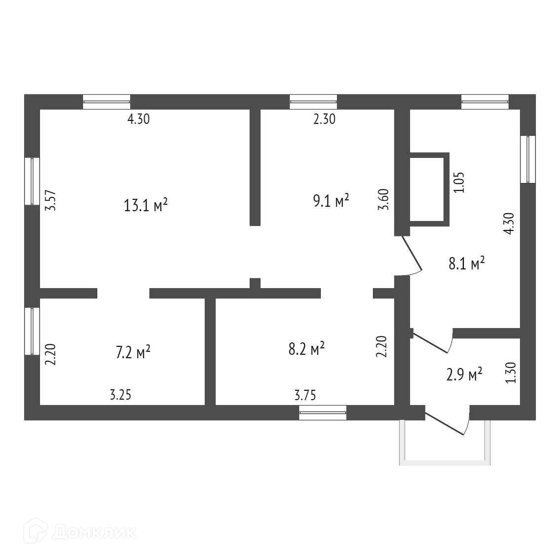 Общая площадь 49.6 м2