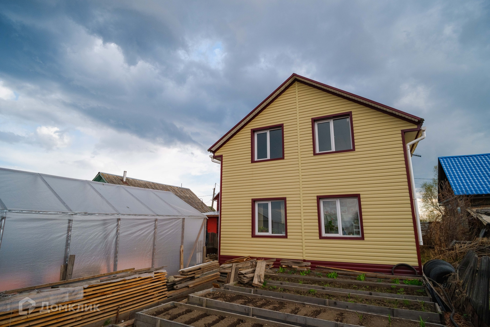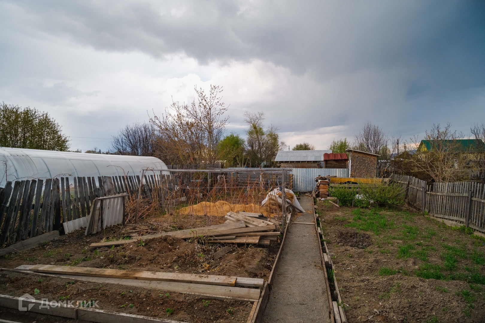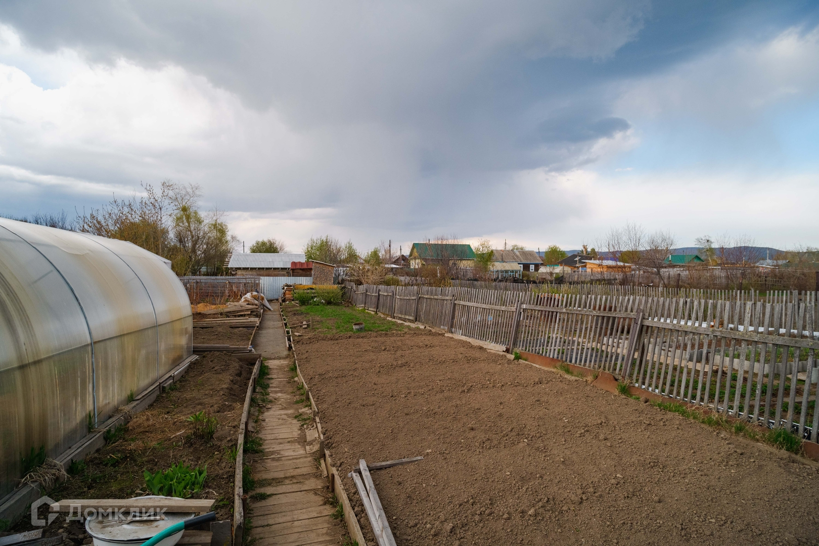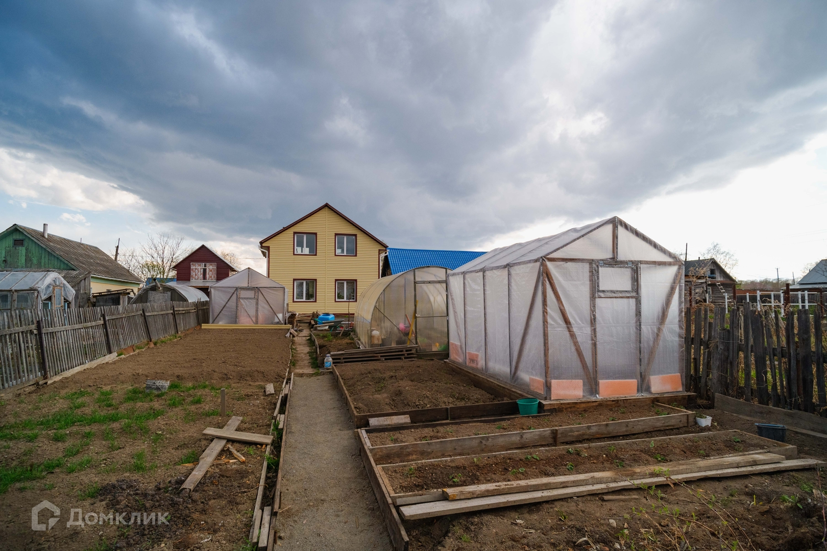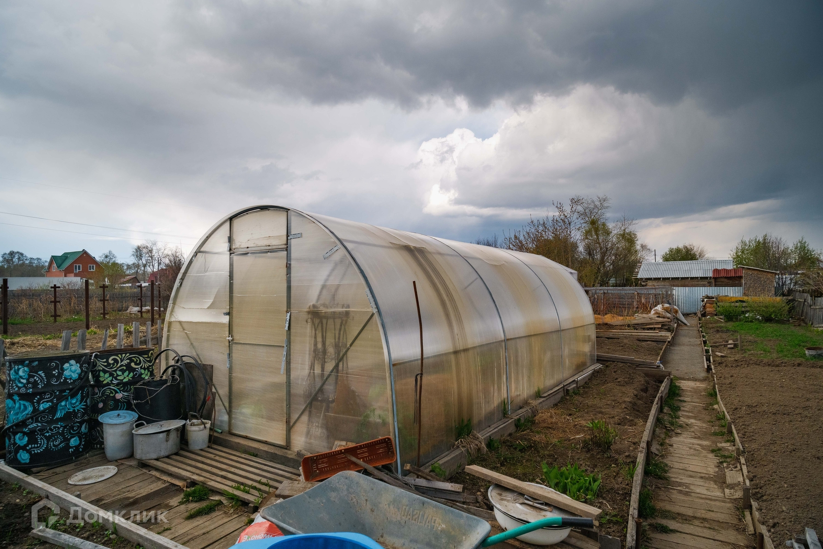 Земля очень ухожена и возделана, организованы аккуратные грядки, дорожки выложены и засыпаны, сорняки прополоты. Мечта хозяйки. На участке несколько больших теплиц и хозяйственных построек. Все очень аккуратно и чисто.