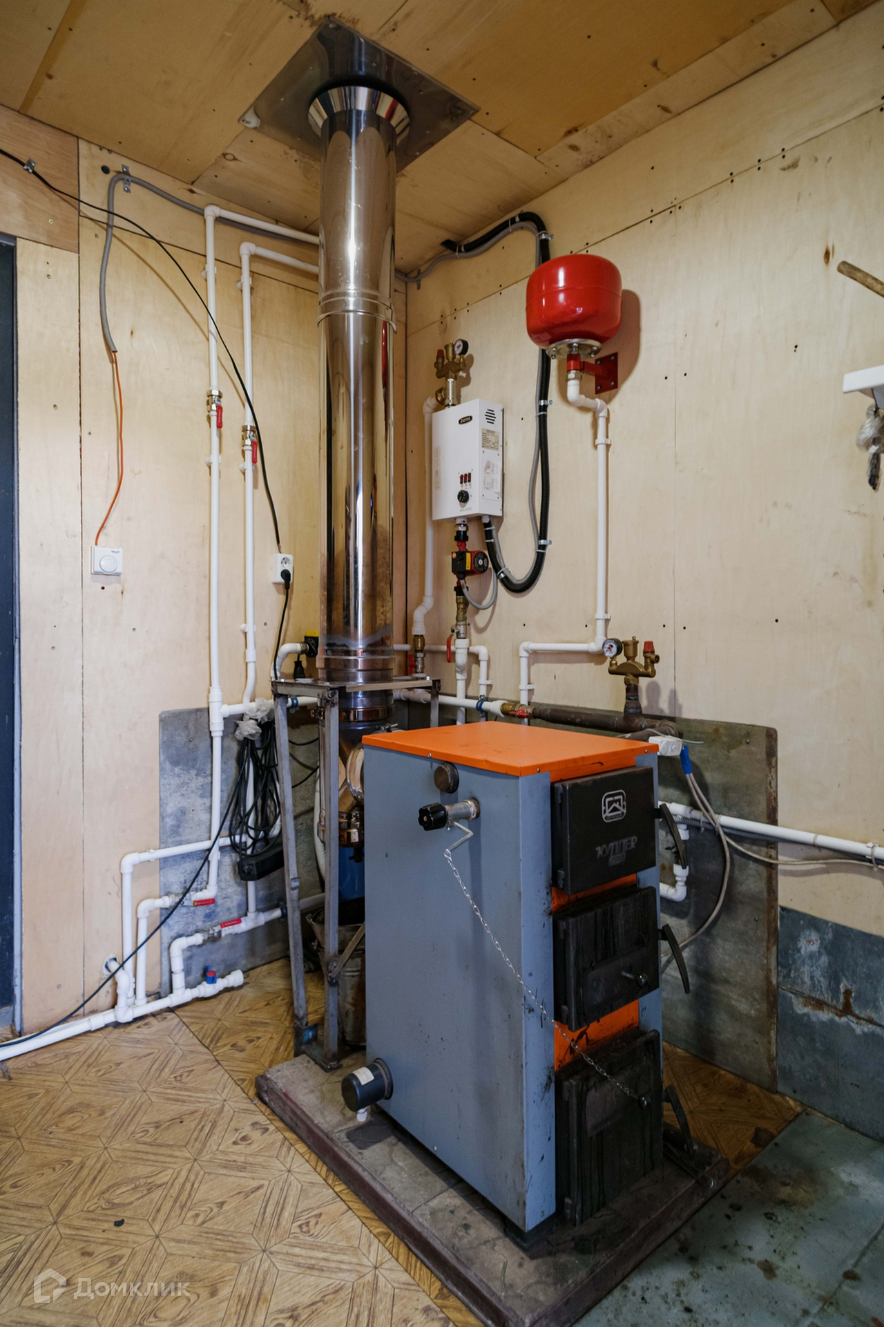 Отопление смешанное-котёл твердотопливный и электрический.