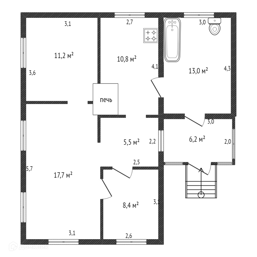 Общая площадь 72.8 м2