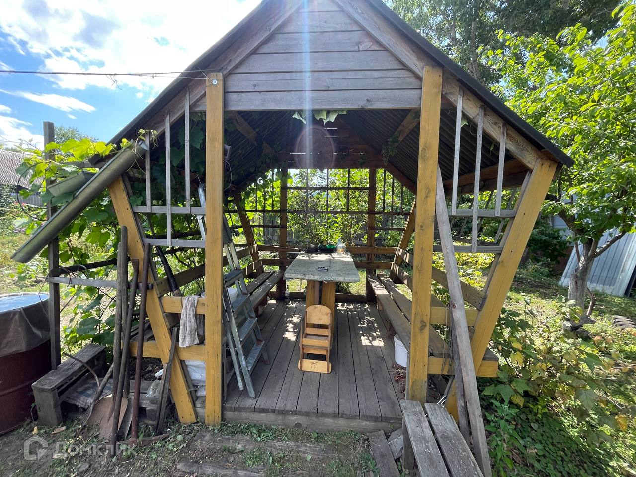 Земля плодородная, есть теплица и парники, беседка на участке, и погреб в доме.