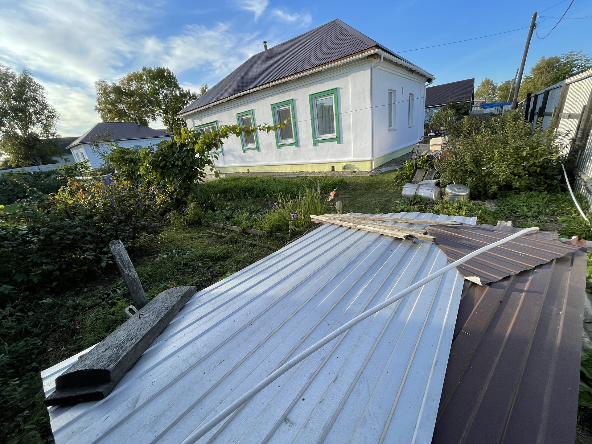 Земельный участок ухожен (виноград, смородина разная, вишня, крыжовник, клубника, малина, ирга, жимолость, калина, растут опята). Есть теплица 3х6 из поликарбоната, много парников . . .