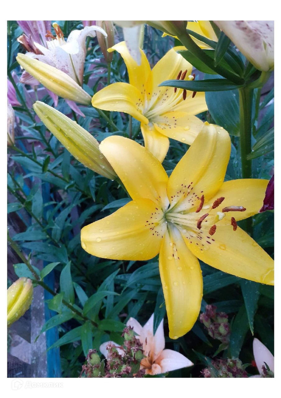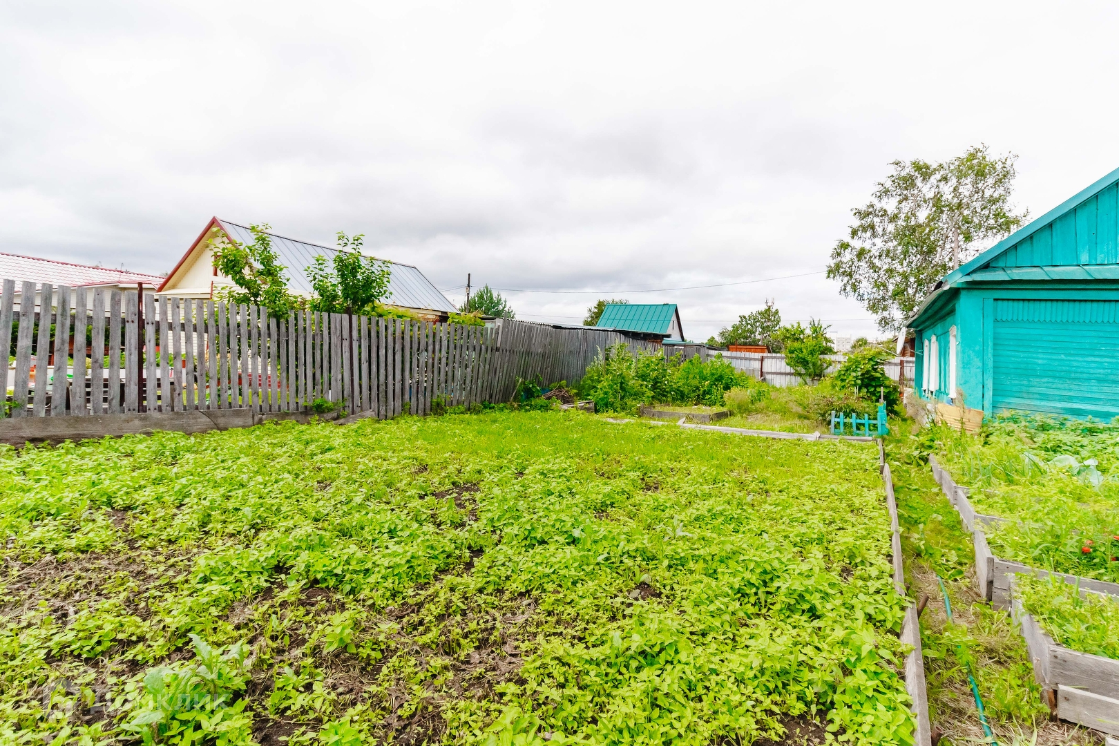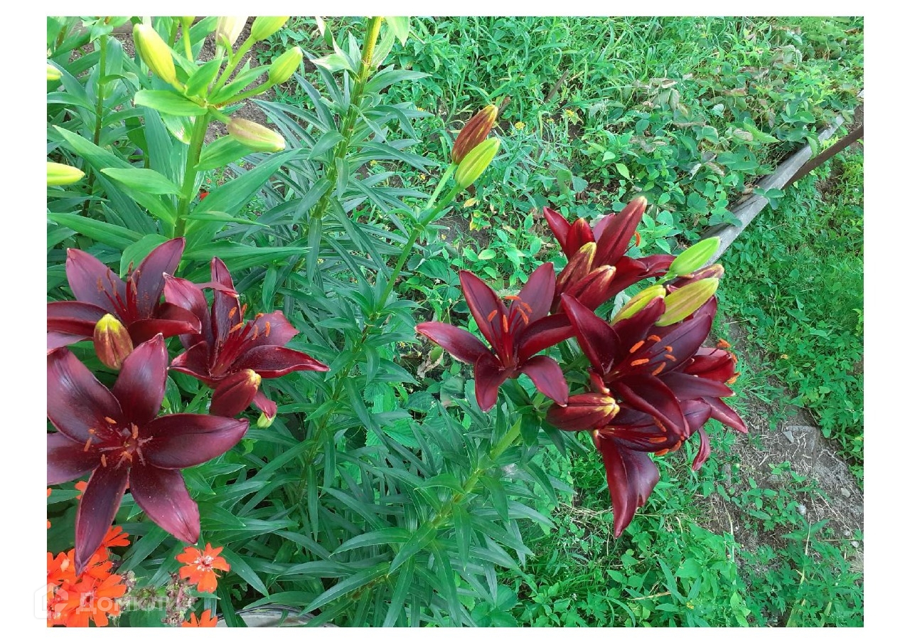 Имеются плодовые деревья и кустарники : виноград белый виноград черный сорта Изабелла, вишня войлочная, слива молодая, смородина белая черная красная, малина и клубника, многолетние цветы гортензии пионы лилии