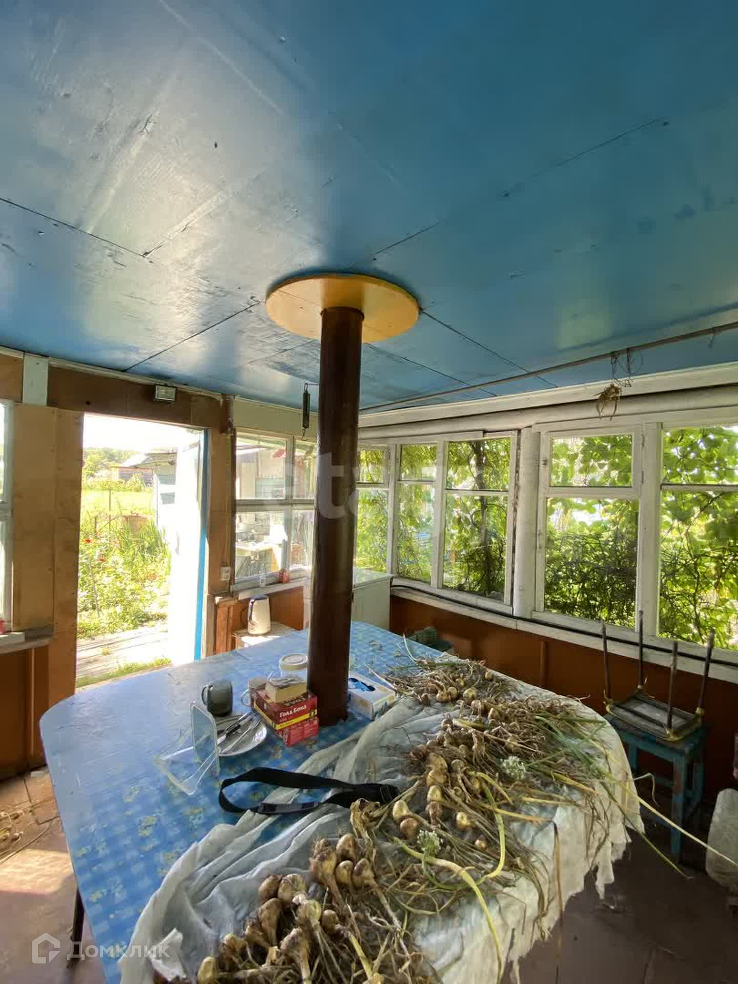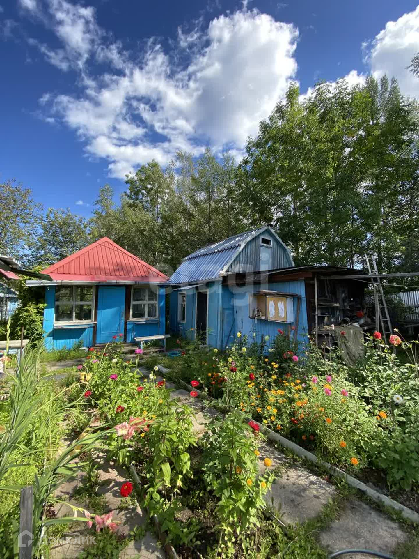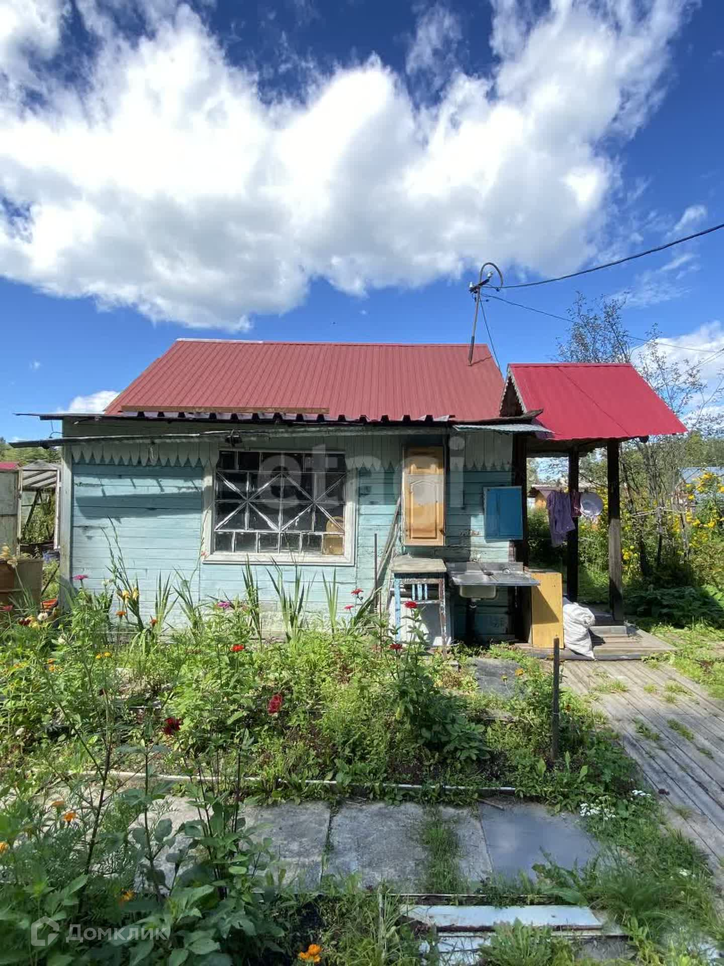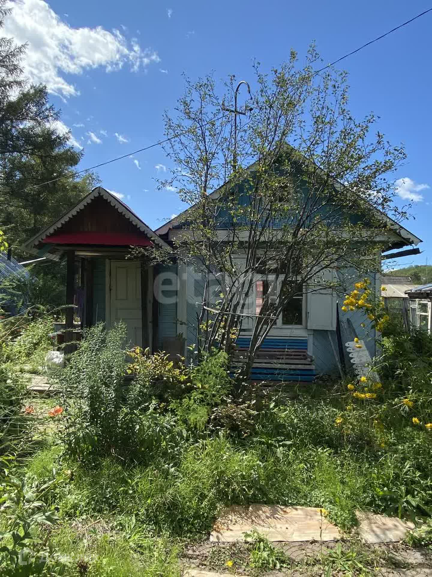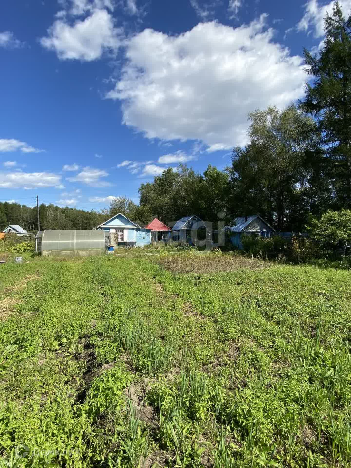 На участке несколько построек: двухкомнатный дом, баня, летняя кухня, просторная веранда, сарай, 2 теплицы.