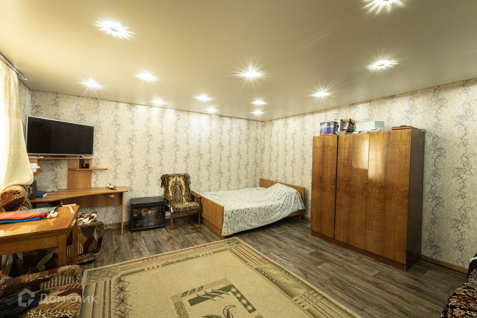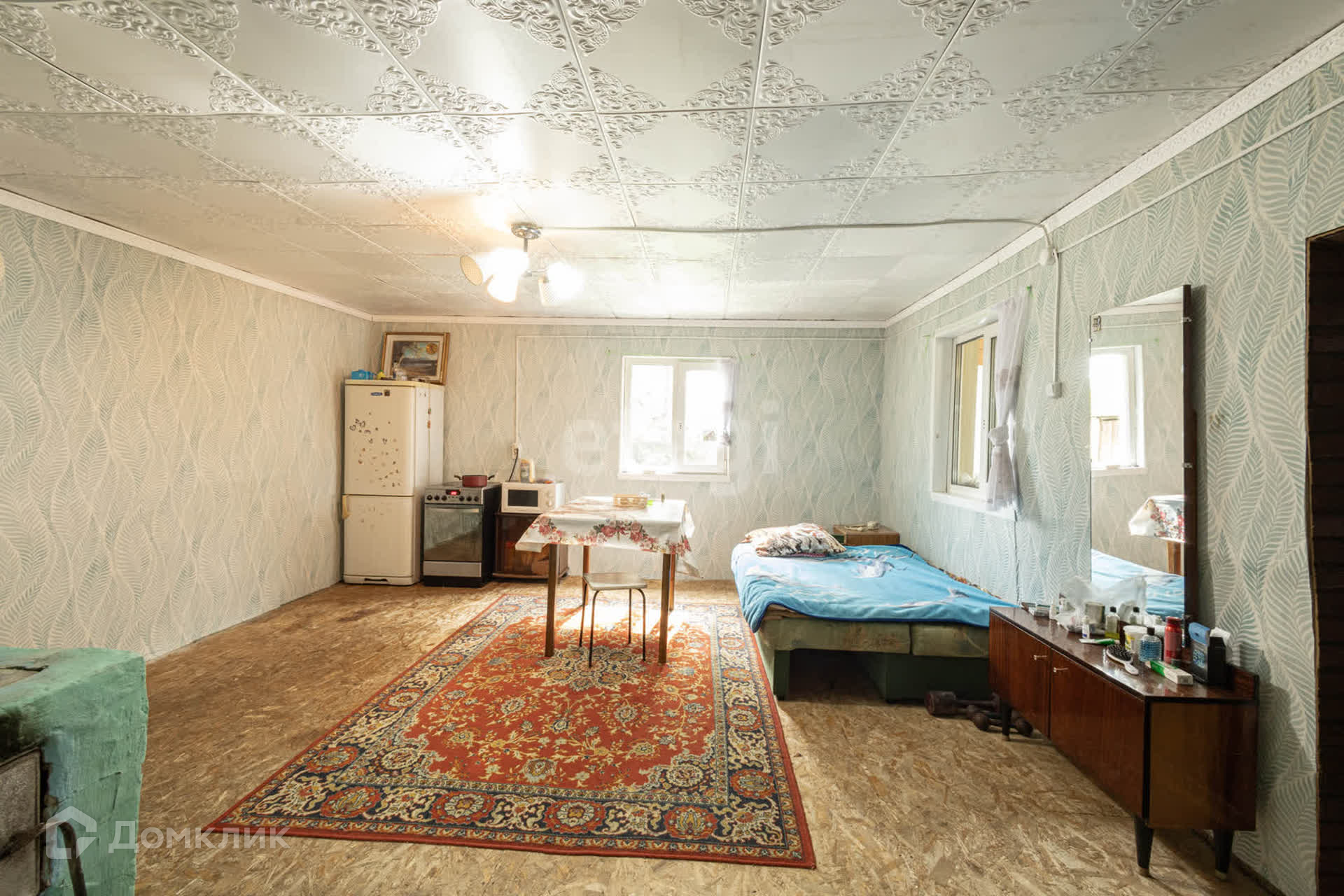 В доме сделан косметический ремонт. Установлены пластиковые окна. Железная входная дверь. В одной из комнат натяжной потолок, в другой-плитка потолочная. На стенах поклеены обои. На полу постелен линолеум.