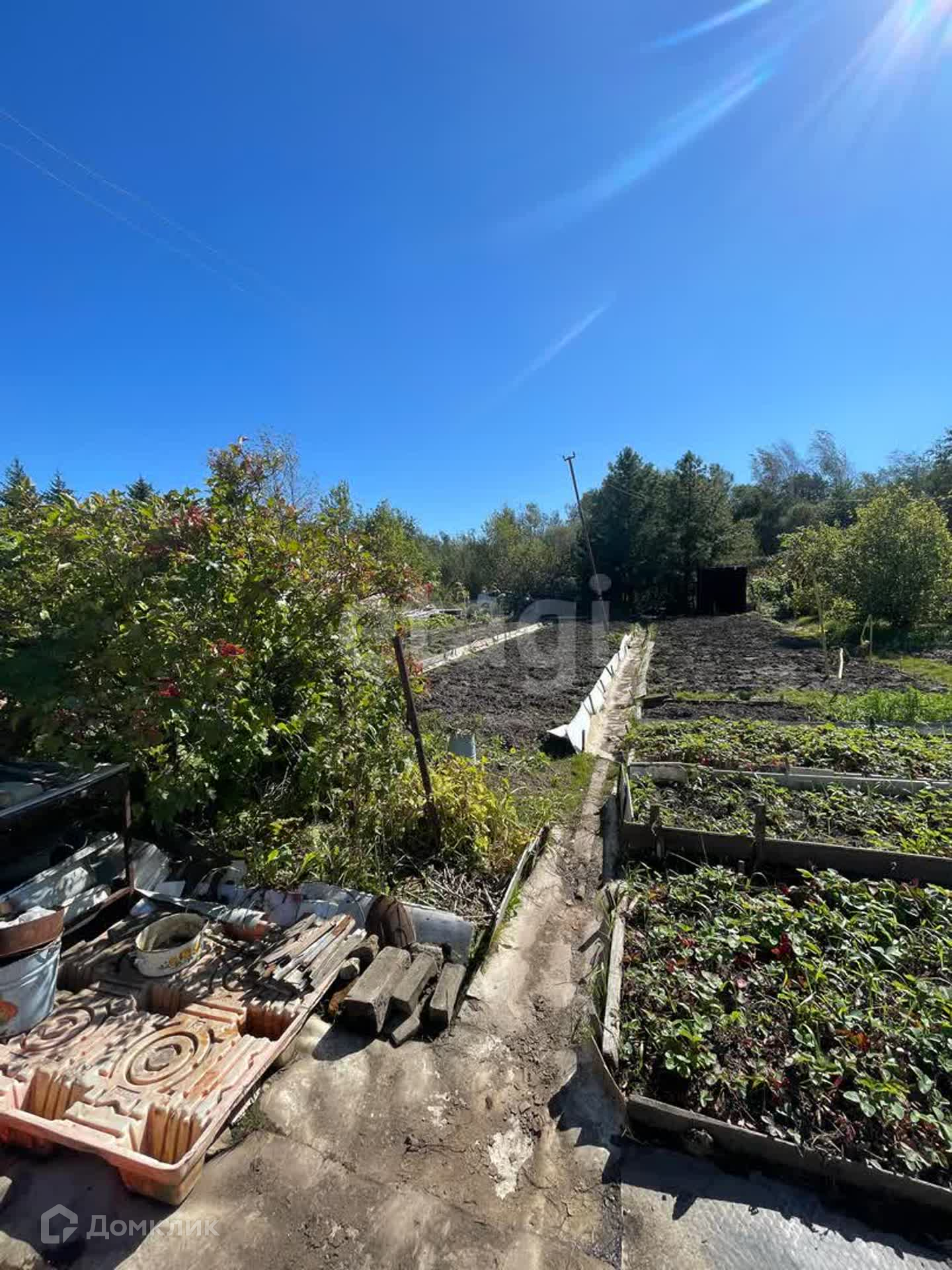 На участке растет : малина, клубника, жимолость, смородина черная и красная, крыжовник, облепиха, виноград,а также рядом кедр.