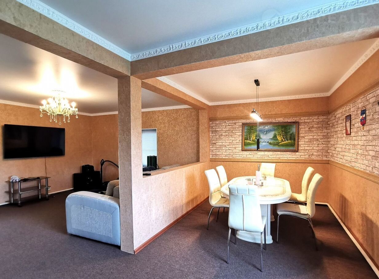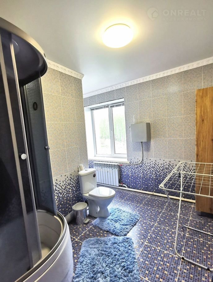 Состояние и коммуникации: пластиковое остекление всех окон, обои, натяжные потолки, гостиничного класса ковролин, система отопления дома через твердотопливный котел, дублирующие электроматы в полу первого этажа, холодное водоснабжение - скважина, насос, разводка по дому; горячее водоснабжение дома - скважина, насос, бойлер на 200 л, разводка по дому. Дублирующий газовый котел на гвс., водоотведение: шамбо на 8 кубов.