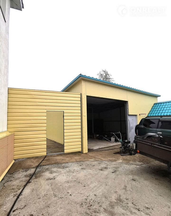 Гараж 1: встроенный в жилой дом с отоплением (зимой 24 градуса), размер 4,5 м. на 8,0 м., высота 4,0 м, секционные ворота 2,5 м на 3,0 м. На полу керамогранит, стены окрашены.